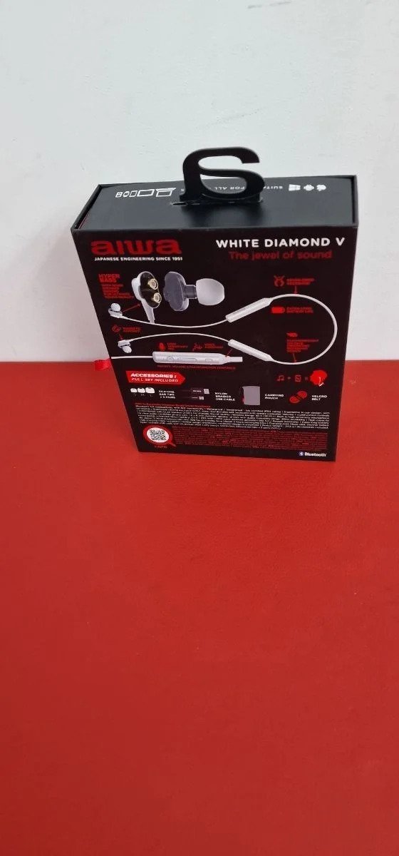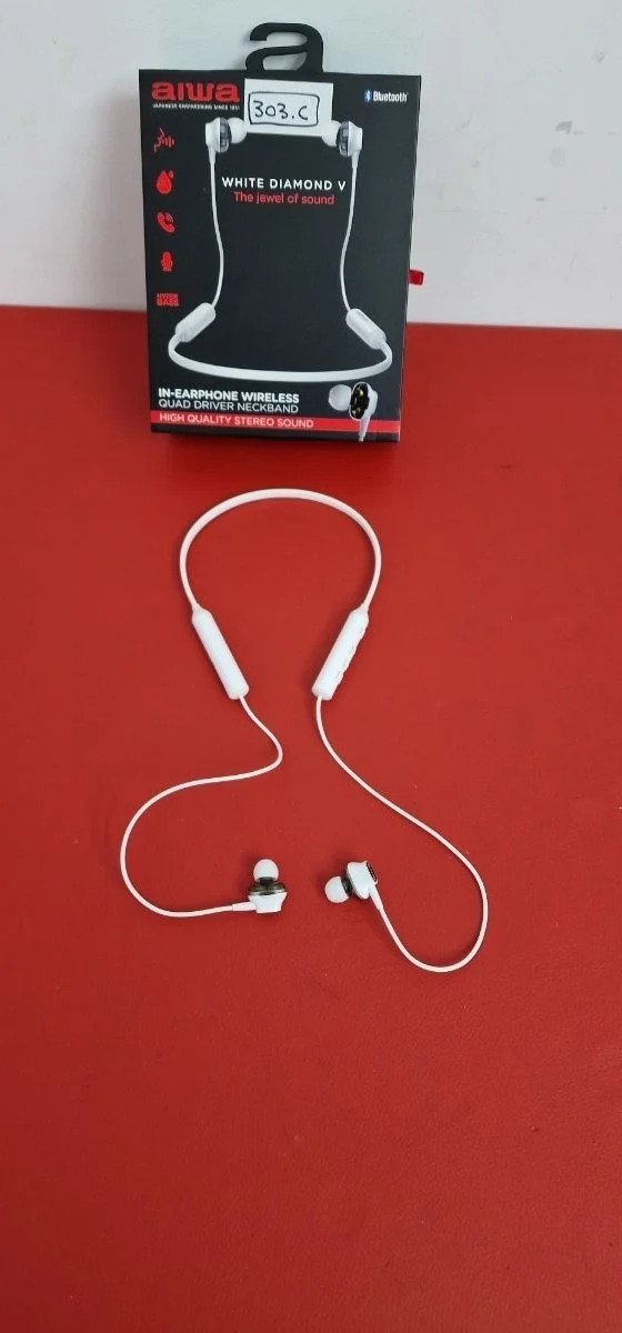 Aiwa: Auriculares Deportivos inalámbricos, Bluetooth 5.0, Diseño ergonómico, Resistente al Agua (IPX4), Hyperbass, Manos Libres, 15h de reproducción. Color: Blanco