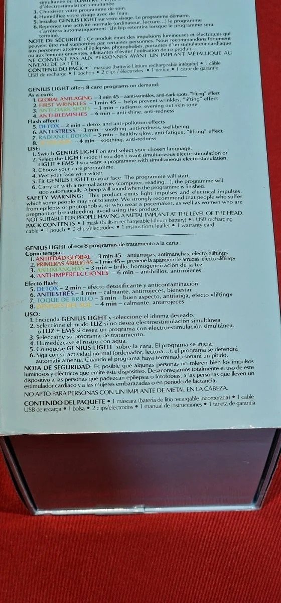 ALIKA – Genius Light – Lámpara de luminoterapia – Cuidado facial – 8 programas – Luz y electroestimulación En la 9 foto estan las características