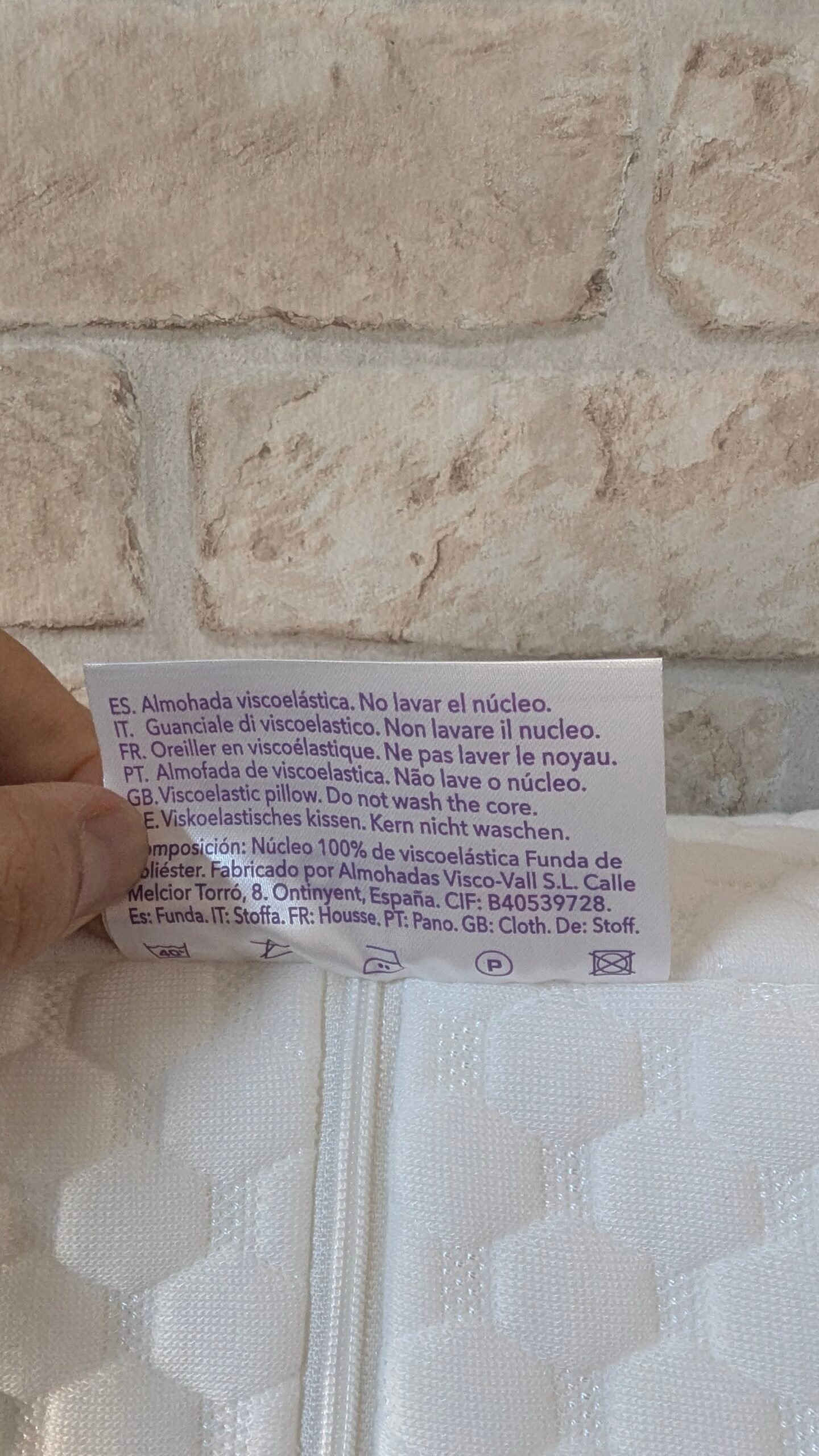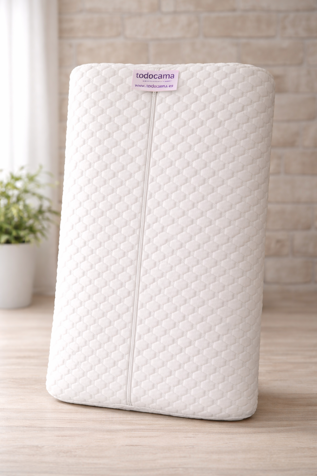 Almohada viscoelástica Todocama con funda acolchada de tacto agradable y cremallera para facilitar la retirada de la funda. Su núcleo viscoelástico ofrece una acogida cómoda y una buena adaptación durante el descanso.