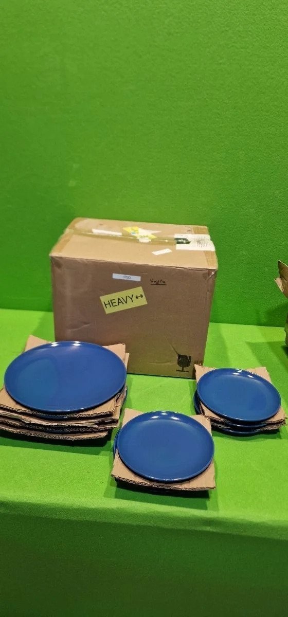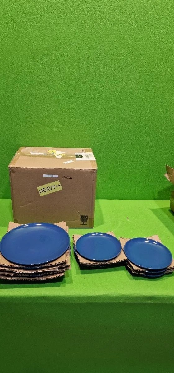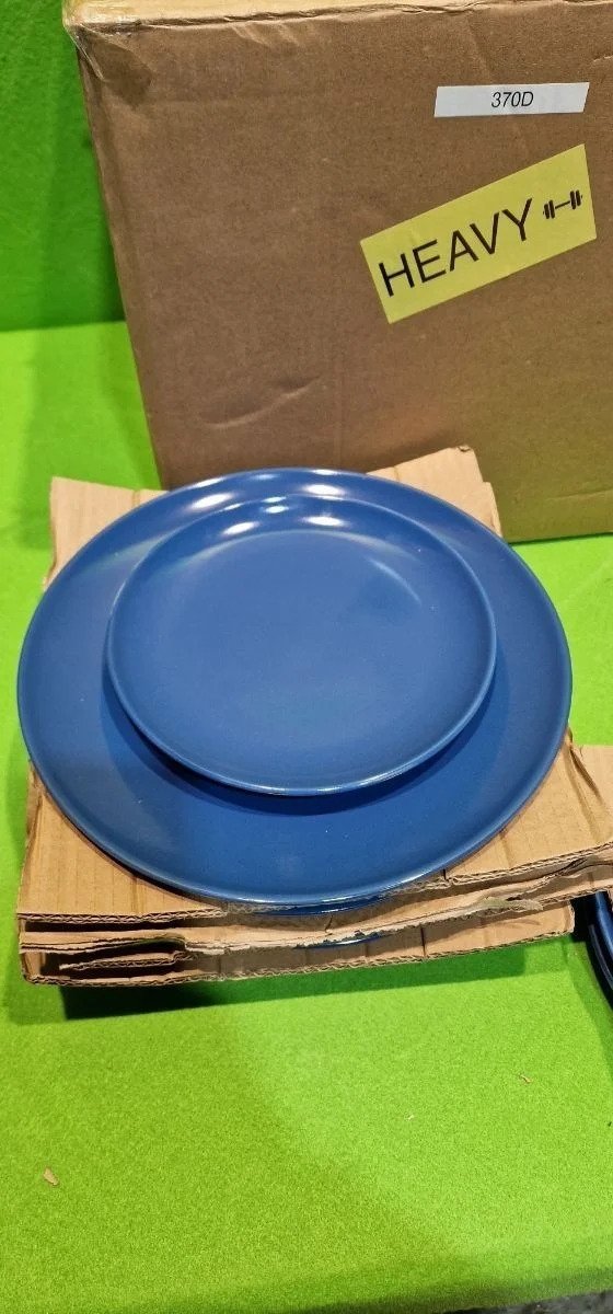 Amazon Basics – Vajilla de gres, color Azul marino, 11 piezas Incluye 5 platos llanos grandes, 6 platos llanos pequeños Gres duradero. Apto para microondas, congelador y lavavajillas Soporta temperaturas de hasta 300 grados