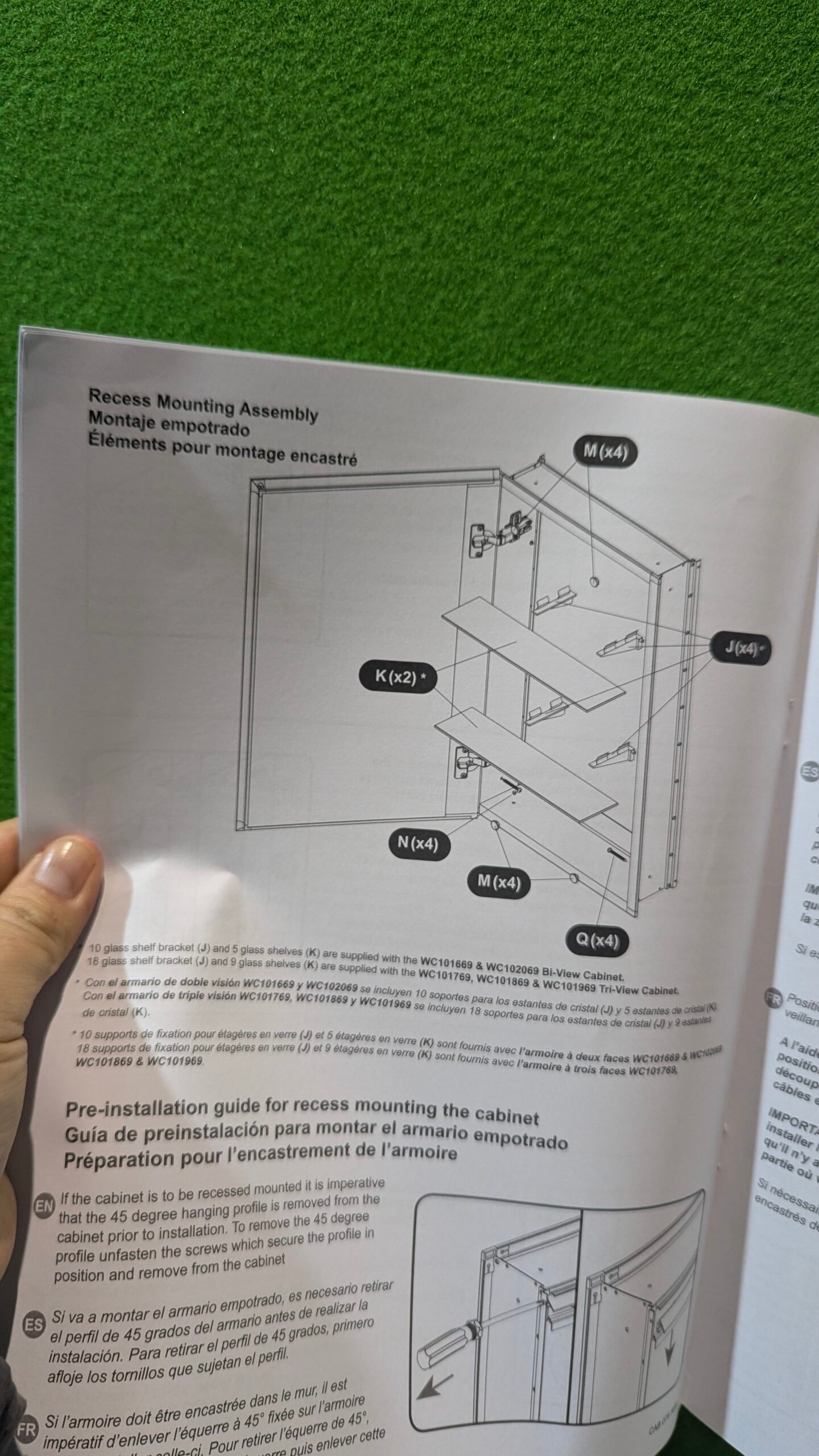 - Puertas de espejo de doble cara con chaflán de 1/2 pulgada en el vidrio del espejo frontal.