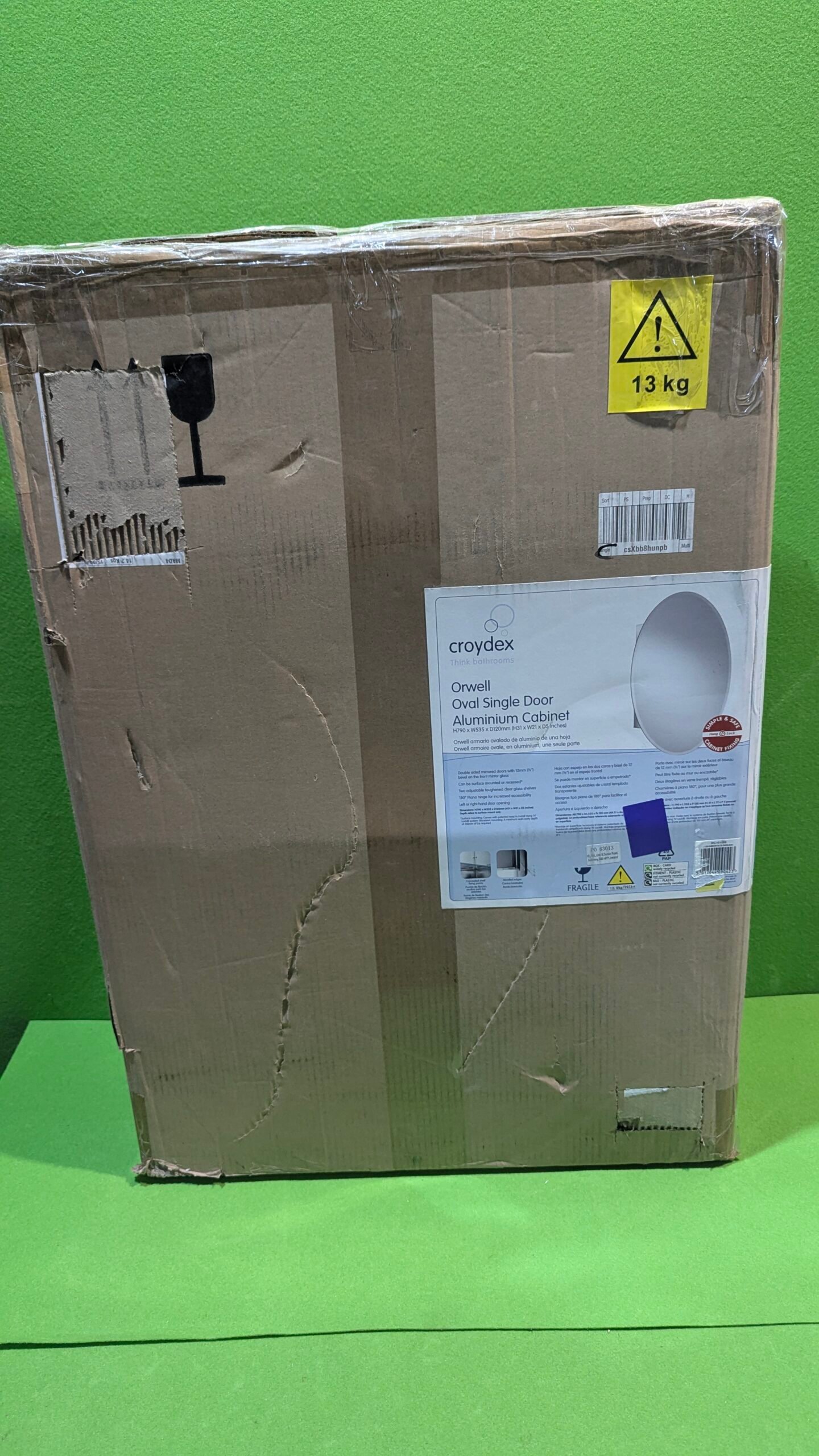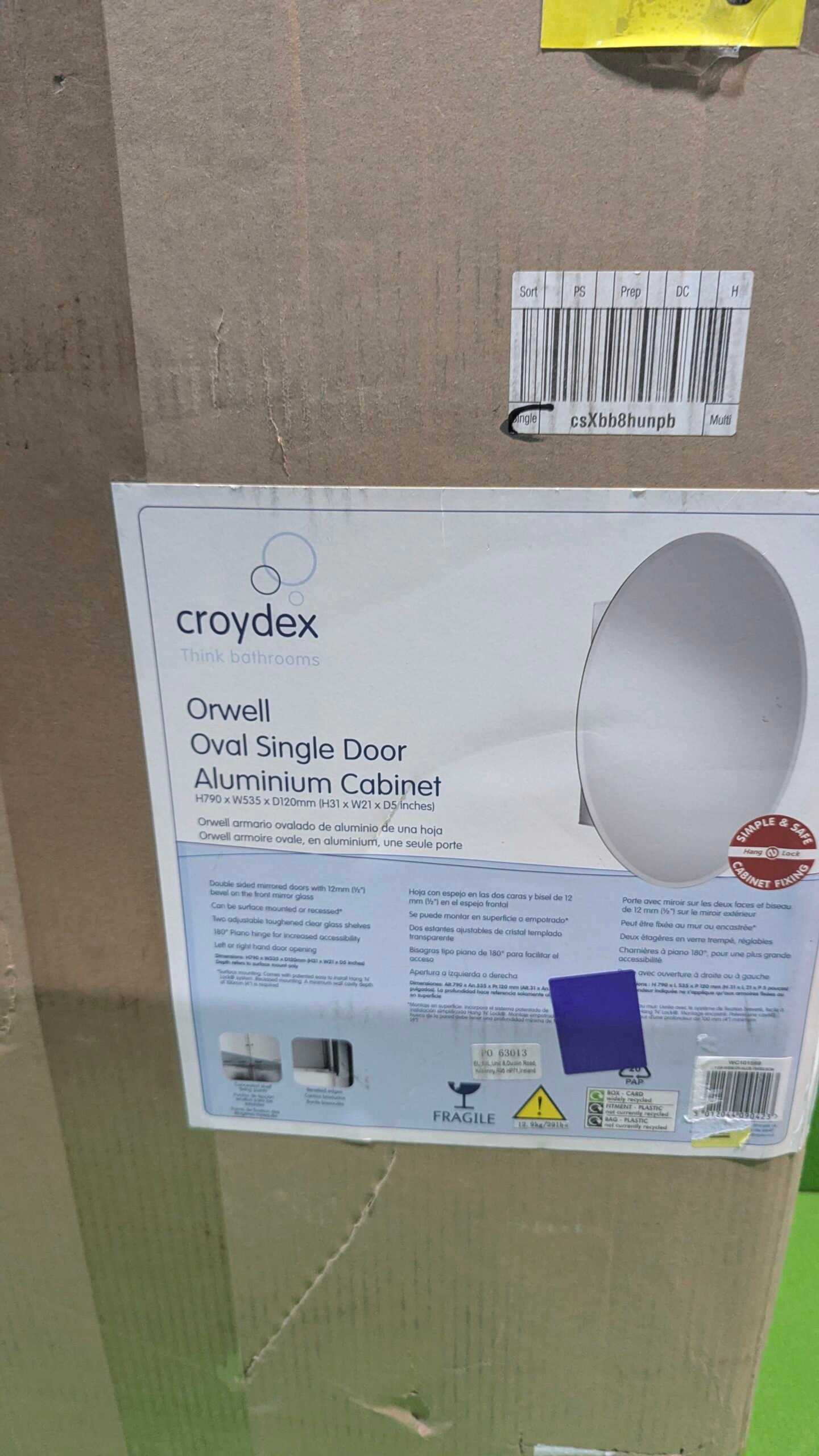 Croydex WC101569 Armario de aluminio ovalado de 1 puerta, 53,5 x 78,5 cm