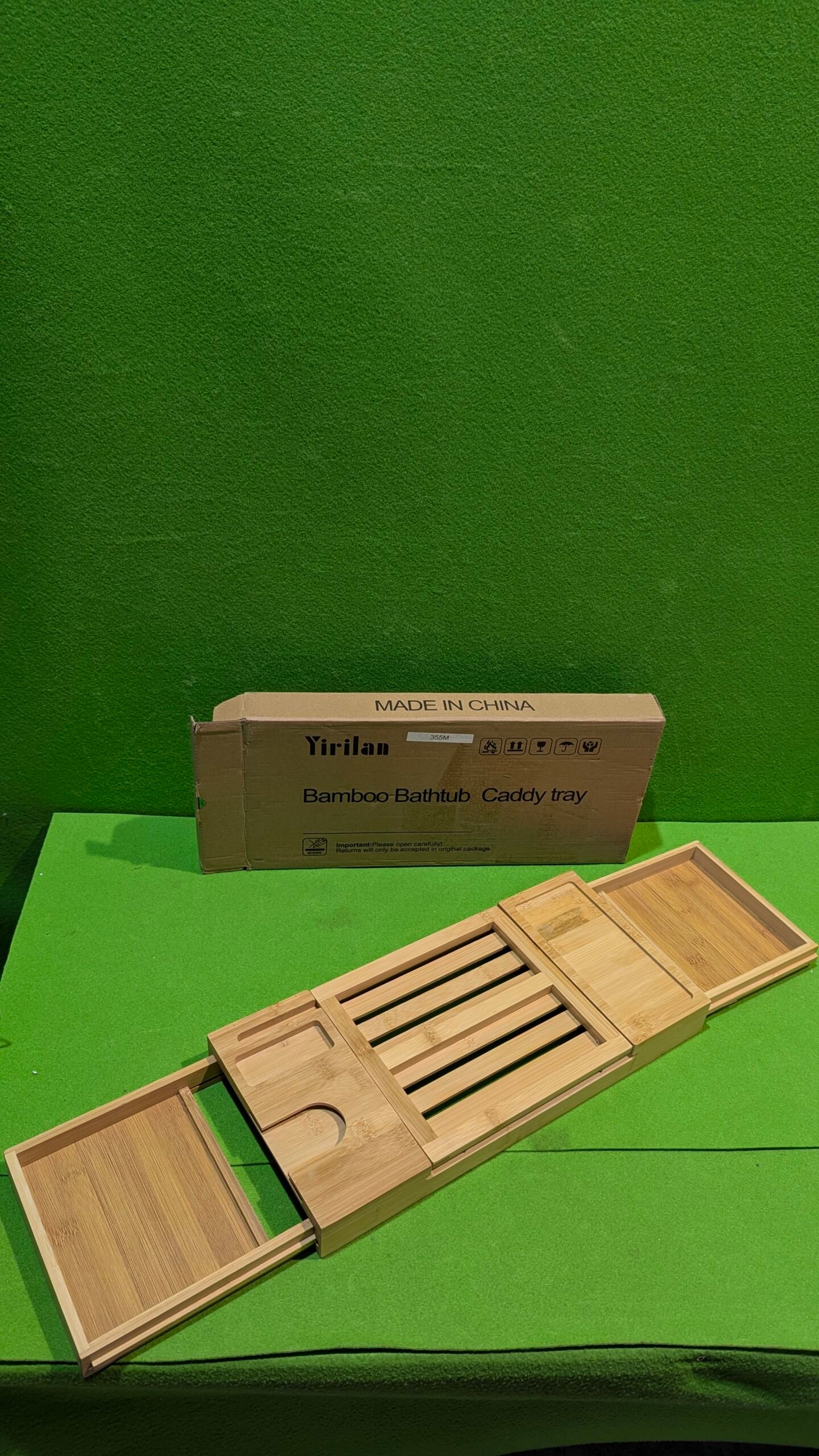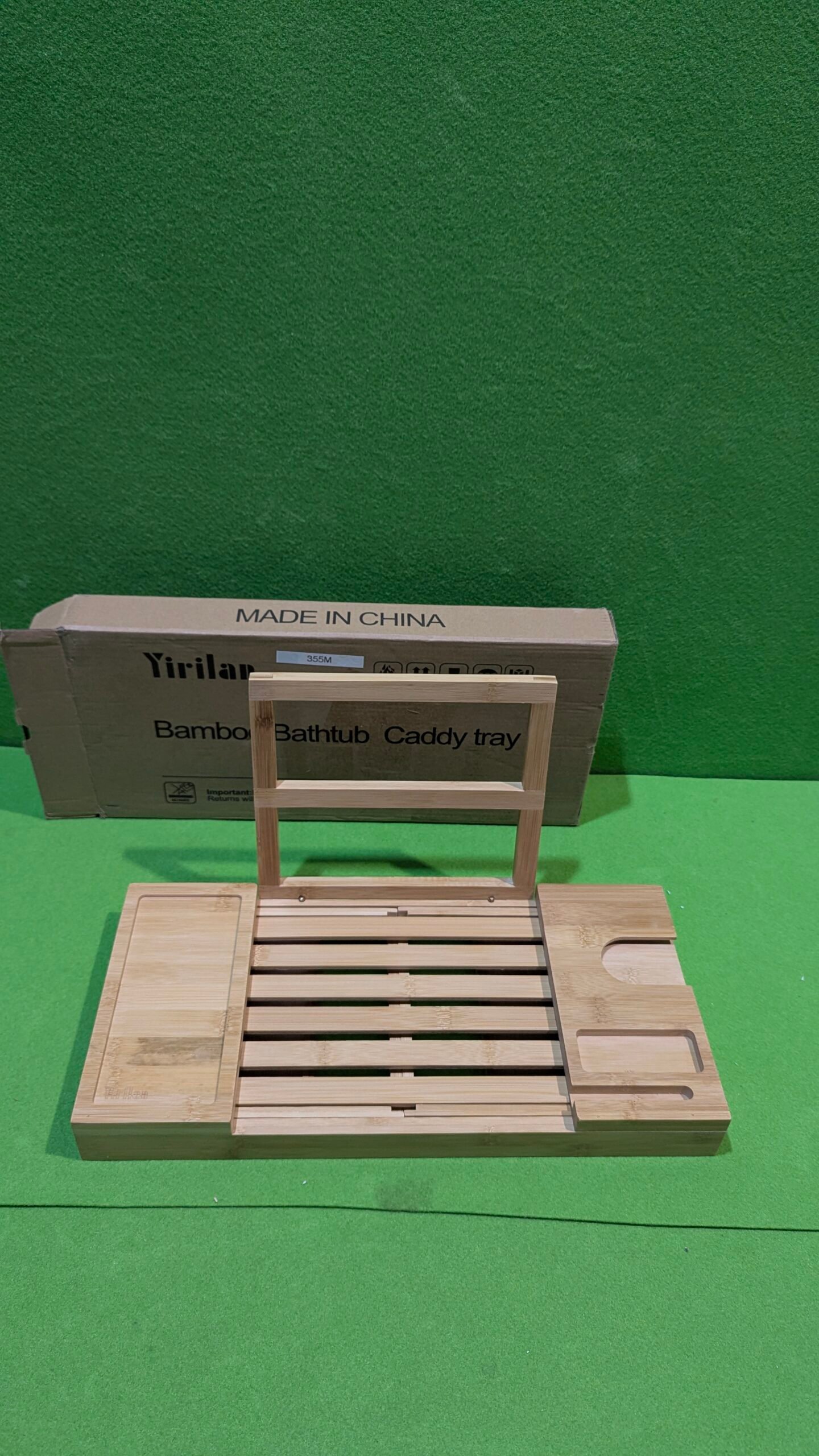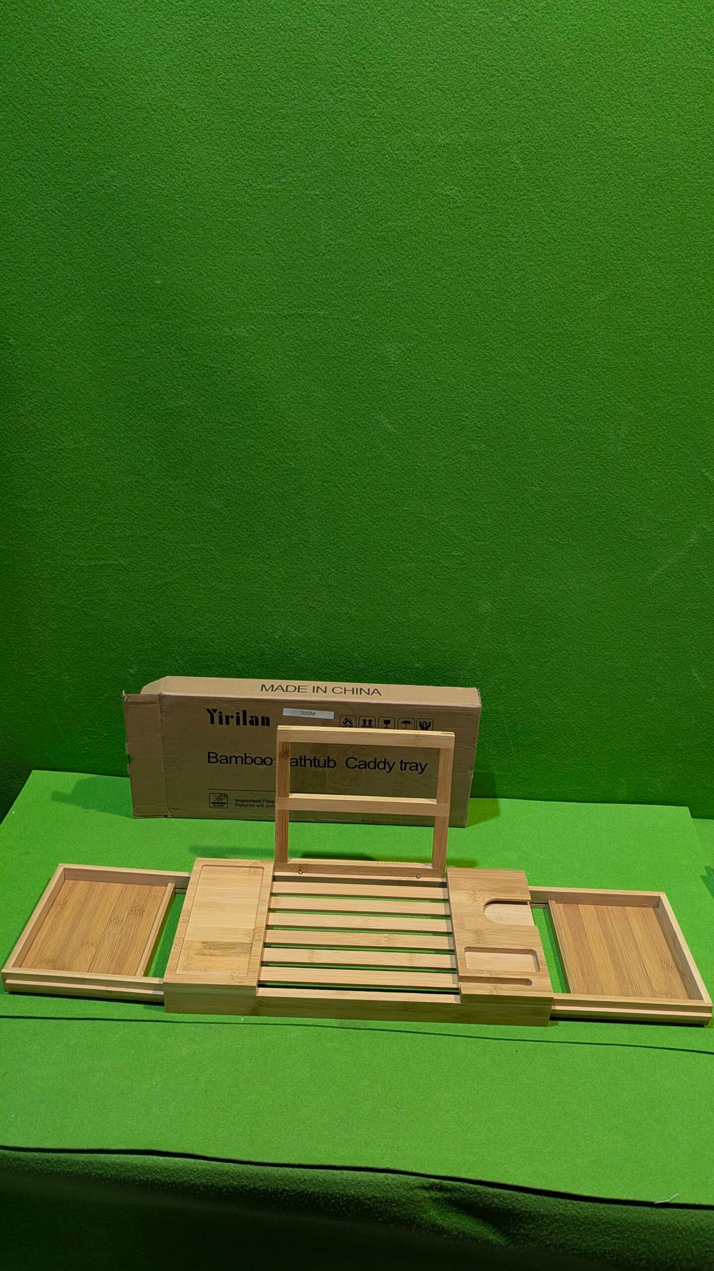 Bandeja Bañera de Bambú Ajustable – Estanterias Baño 44-(80 extensible) x 23,5 x 4,5 cm – Bandeja Bambú con Soporte para Libros y Soporte para Tableta