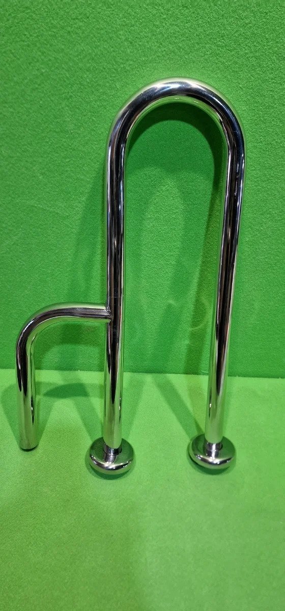 Barra de apoyo pared-pared fabricada en acero inoxidable, acabado satinada, de 600 mm. de longitud, con embellecedor para ocultar la tornillería incluida.