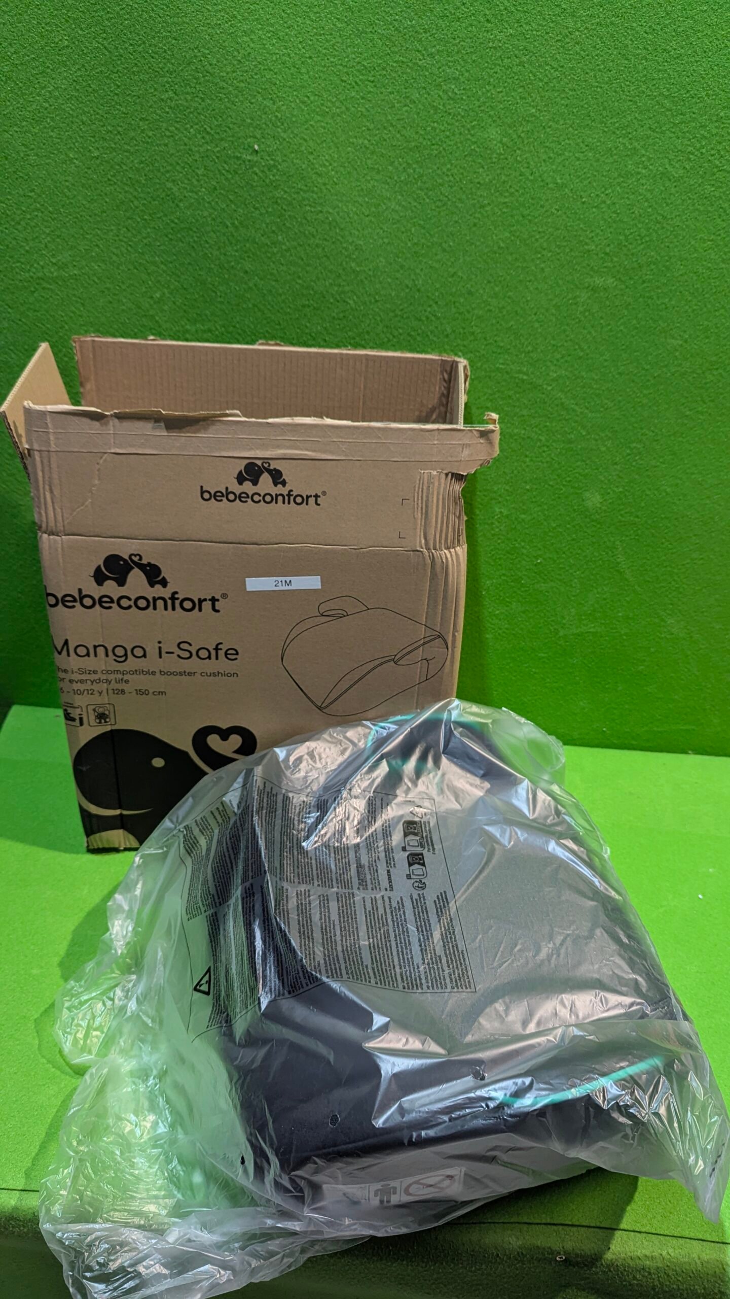 Bebeconfort Manga i-Safe, Asiento Elevador Coche, 6-12 Años, 125-150 cm; Silla Coche, Compacto y Ligero (<1 kg), Fácil Instalación con Cinturón, Acolchado, Tejidos Suaves, Full Black