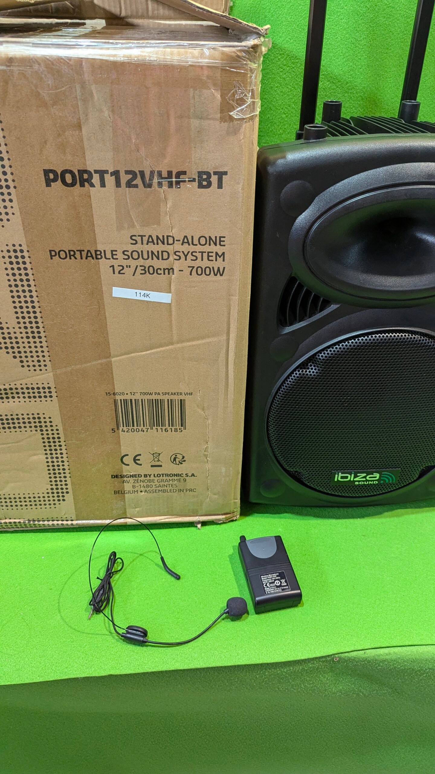 - SONIDO: Equipado con la calidad de sonido de IBIZASound, este sistema portátil se convertirá en tu imprescindible. Con una potencia de 350W RMS, 700W máx., el PORT12VHF-BT es el sistema de sonido portátil definitivo.