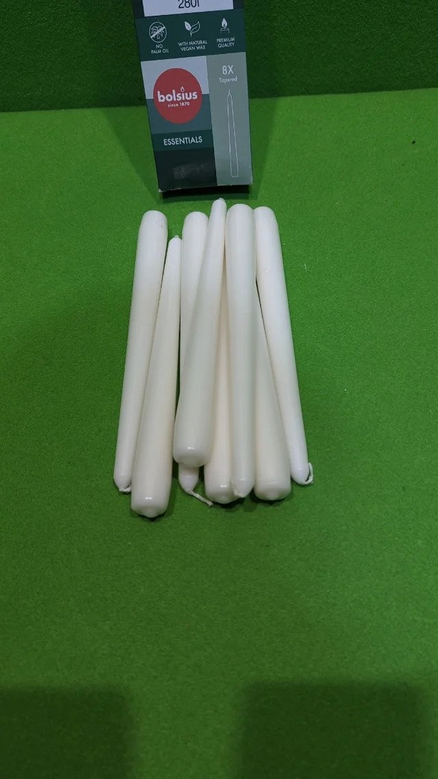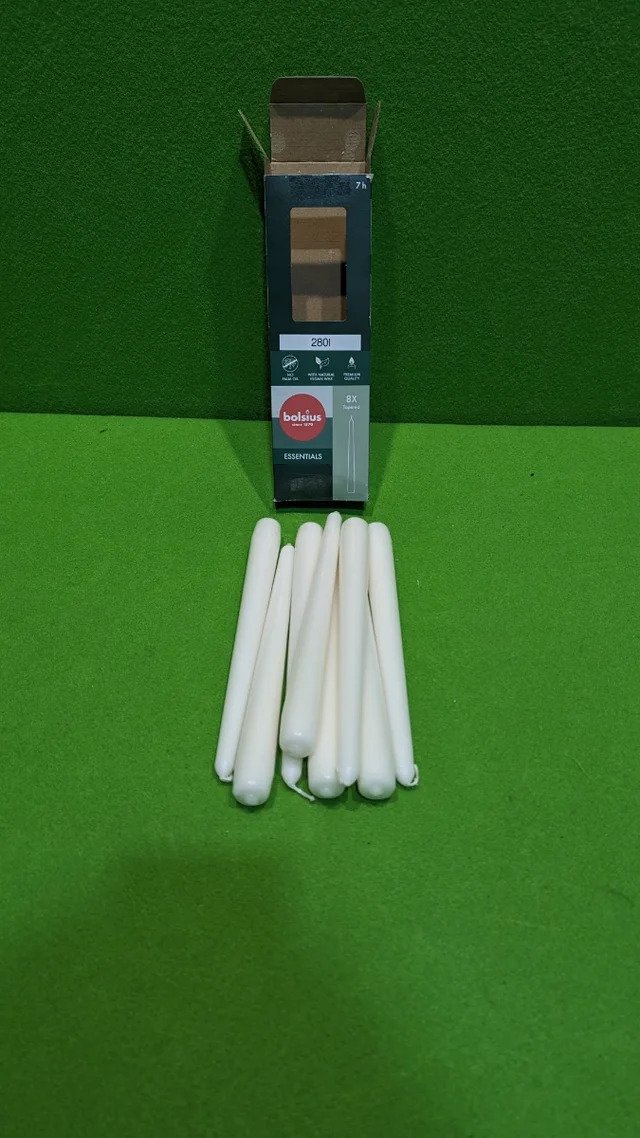 Bolsius – Velas cónicas – Blanco – 8 unidades – Velas decorativas para el hogar – Combustión de 7 horas – Sin perfume – 50% cera vegana natural – Sin aceite de palma