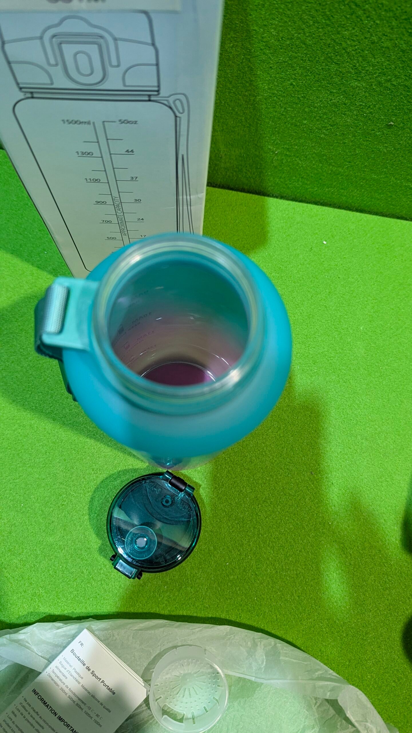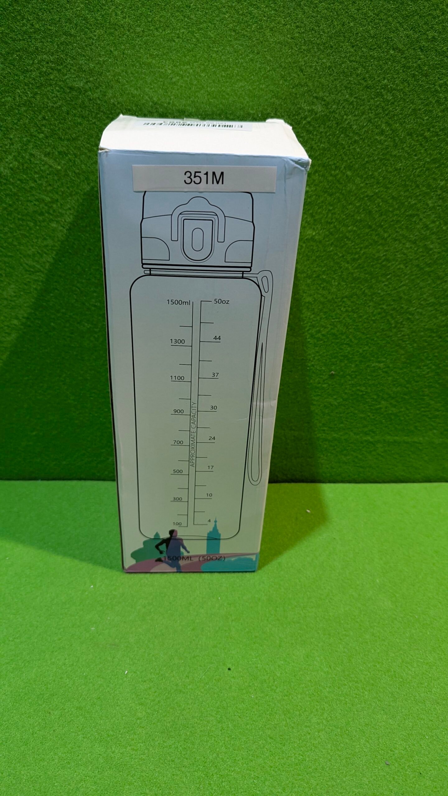 Botella Agua, 1500ML Libre de BPA, Botella Agua Gimnasio, Diseño de Cerradura a Prueba de Fugas, Botellas de Agua, Con Marca de Tiempo, Botellas de Agua Para Niños para Deportes, Camping – VerdePolvo