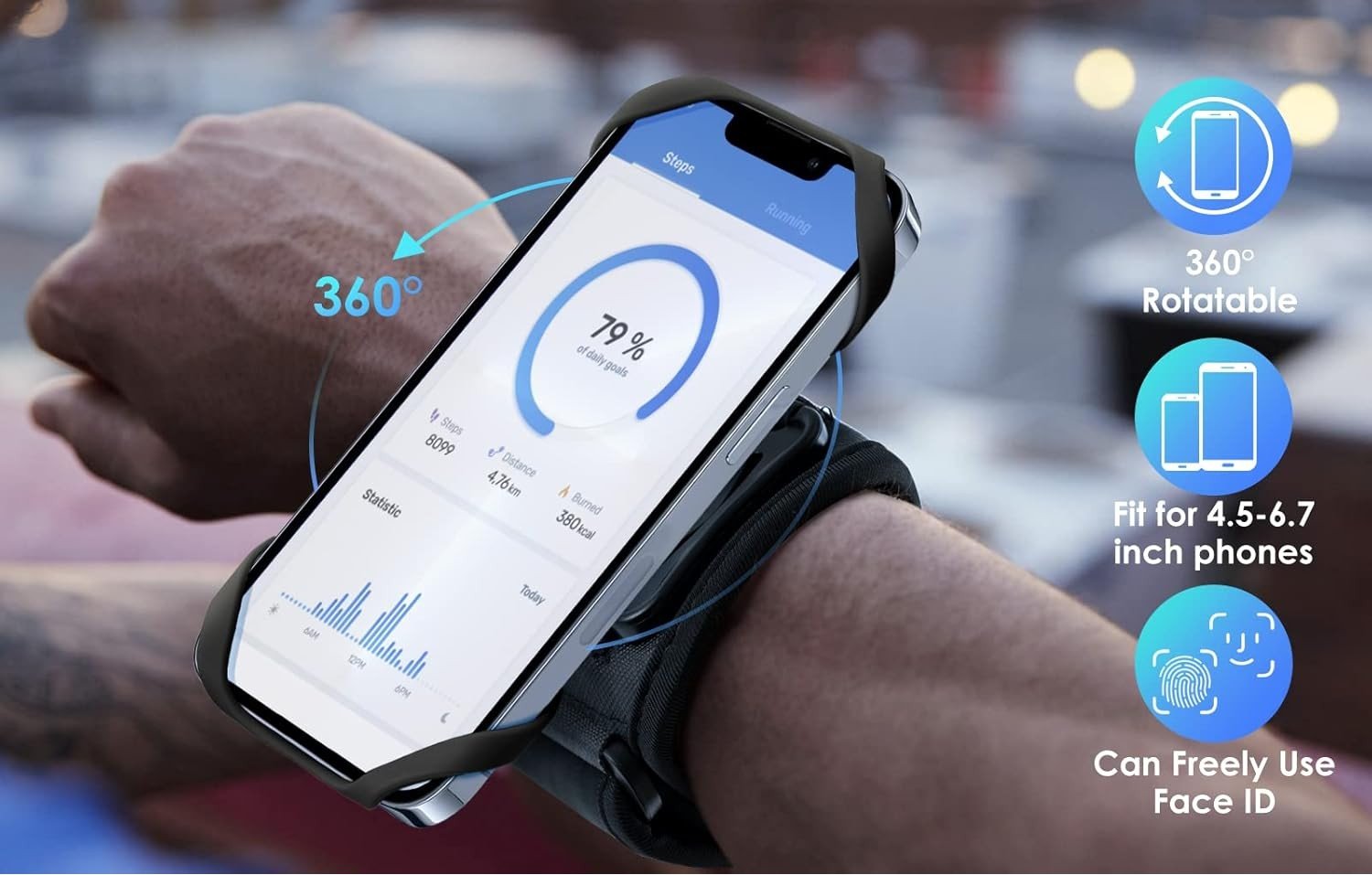 Brazalete Deportivo para Correr El brazalete para correr Phone es ideal para gimnasio, entrenamientos de alta intensidad, ejercicio extremo, fitness, yoga, caminatas casuales o actividades al aire libre como correr, andar en bicicleta, caminar, pescar, andar en canoa, entrenamiento cruzado, ocio diario, etc.