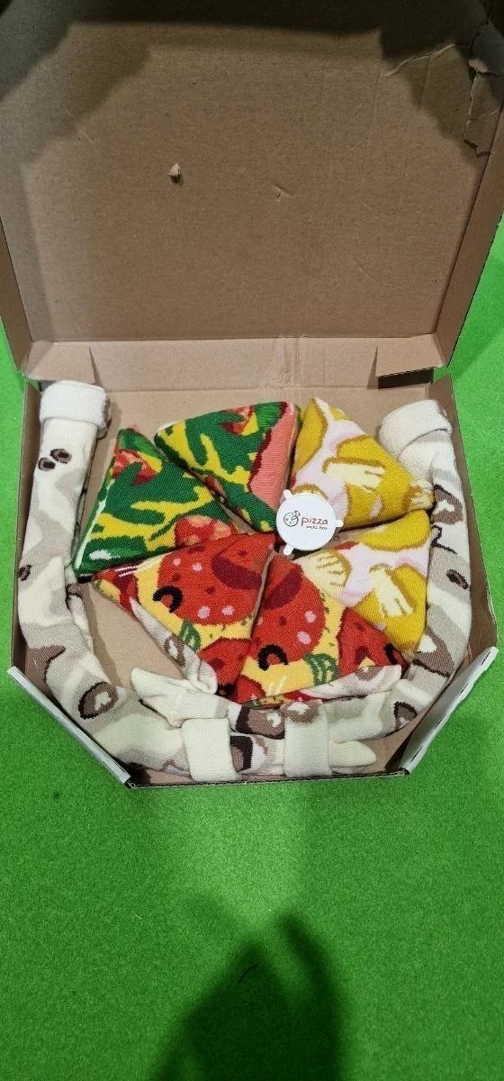 Calcetines: Pizza Socks Box es una propuesta para los amantes de los calcetines coloridos, locos y atrevidos, o para los eternos devoradores de pizza.