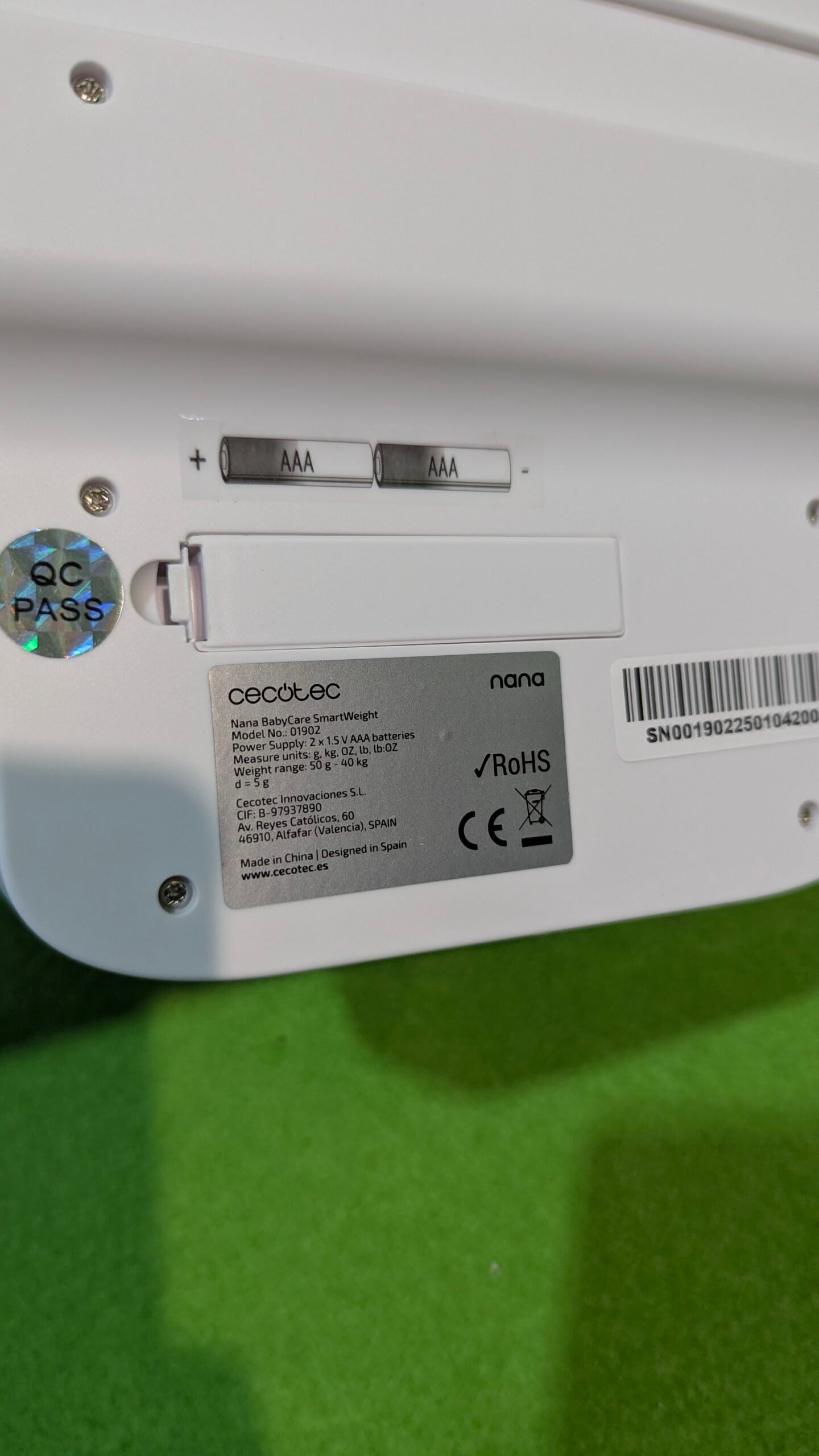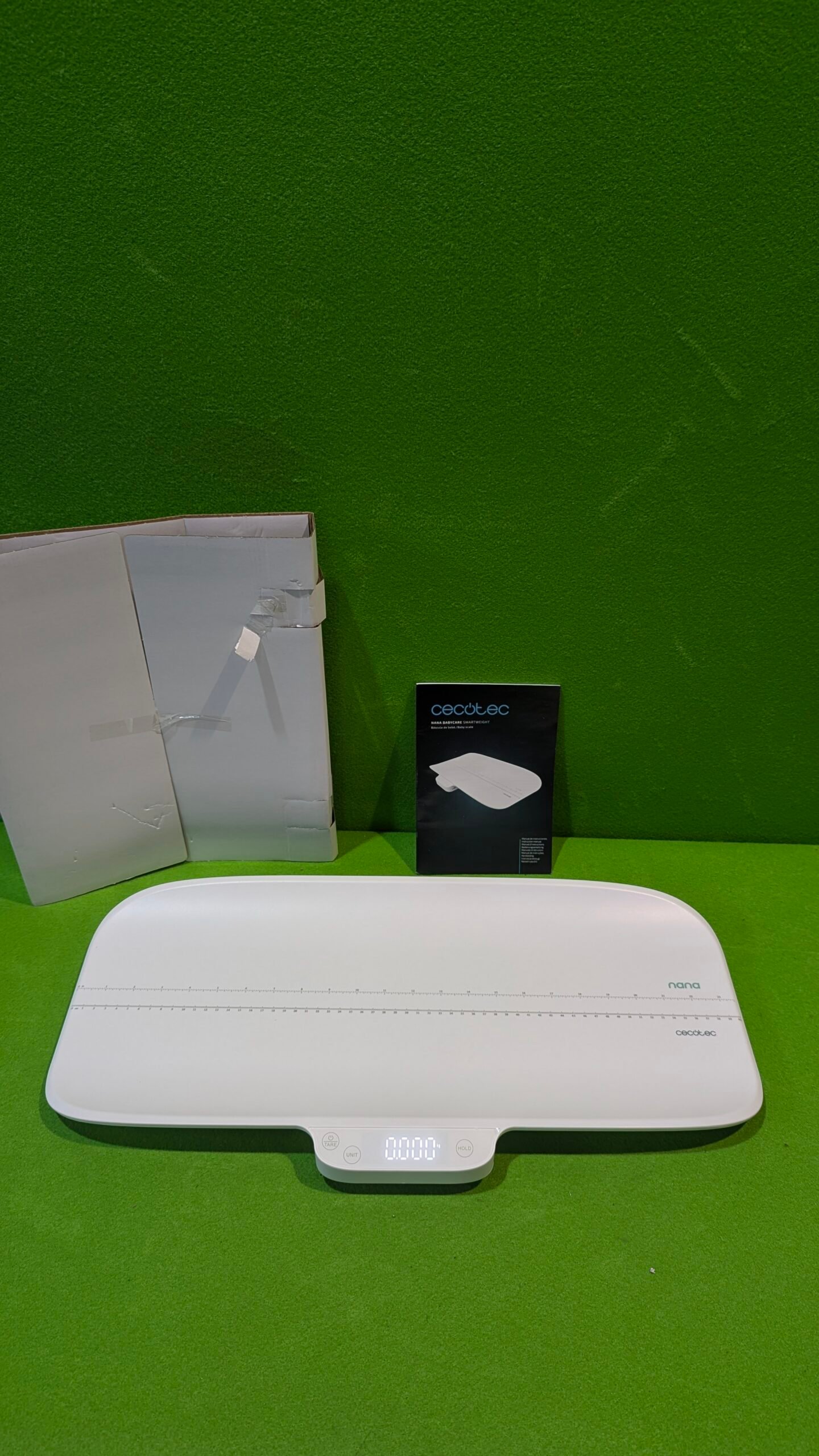 Cecotec Báscula Bebé Digital Nana BabyCare SmartWeight. Pantalla LED, Superficie de Soporte de 60×25 cm, Capacidad de Medición de 50 g a 40 kg, Multifunción, Apagado Automático