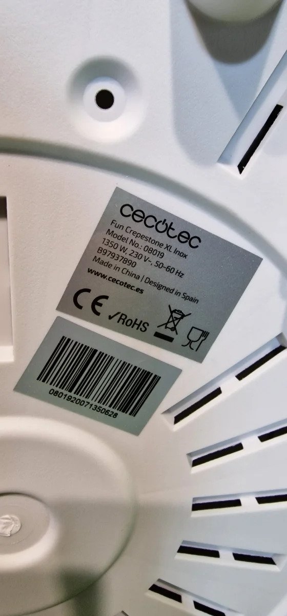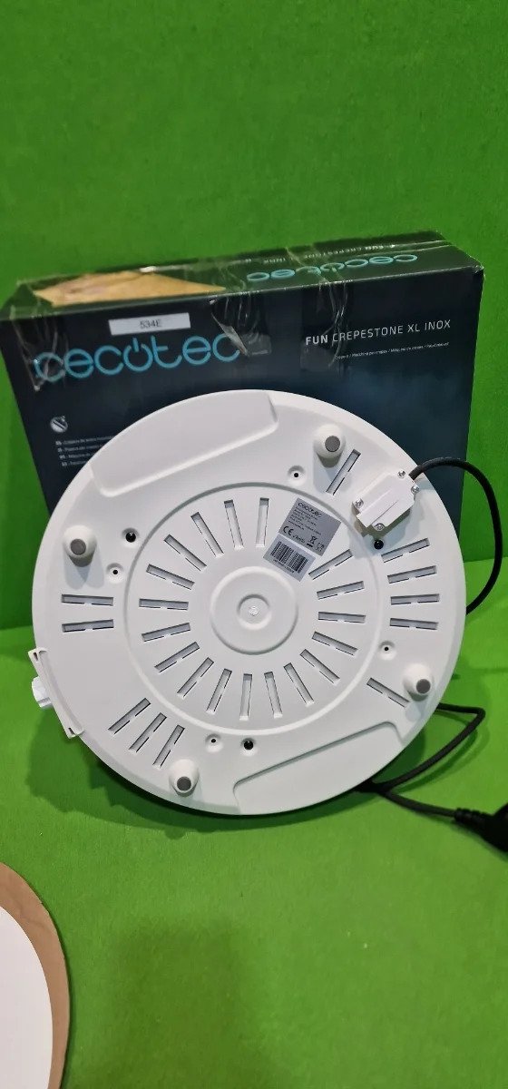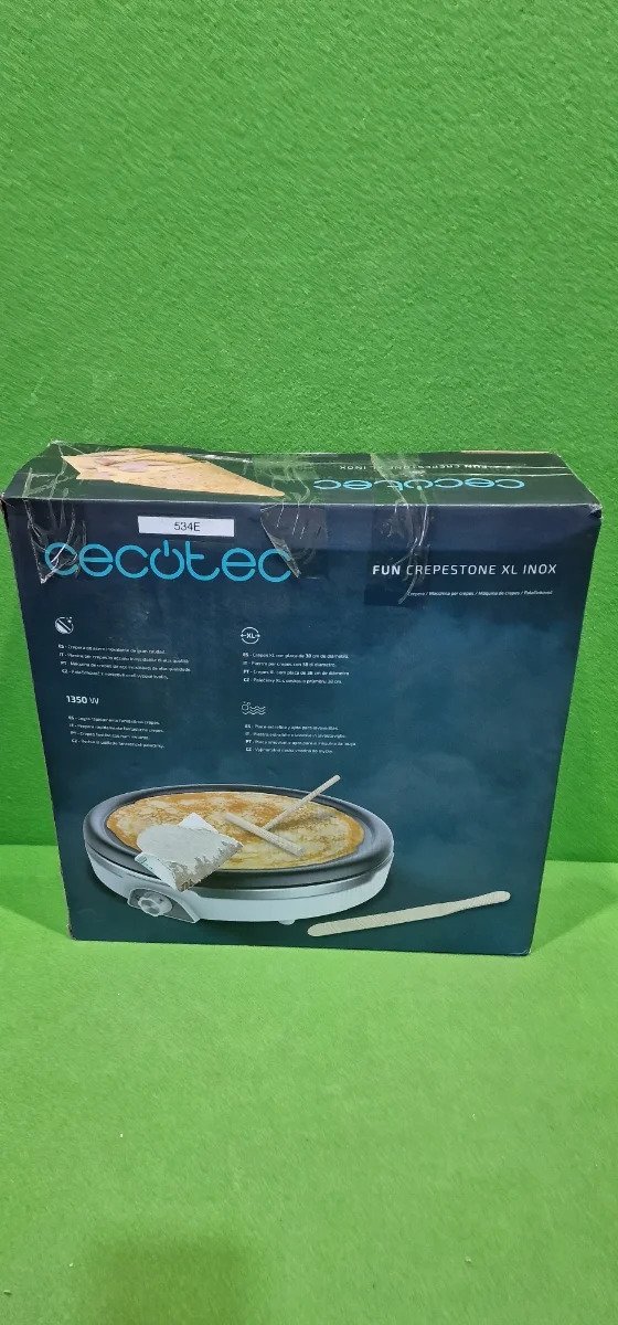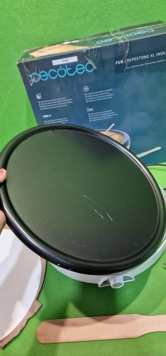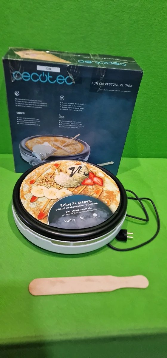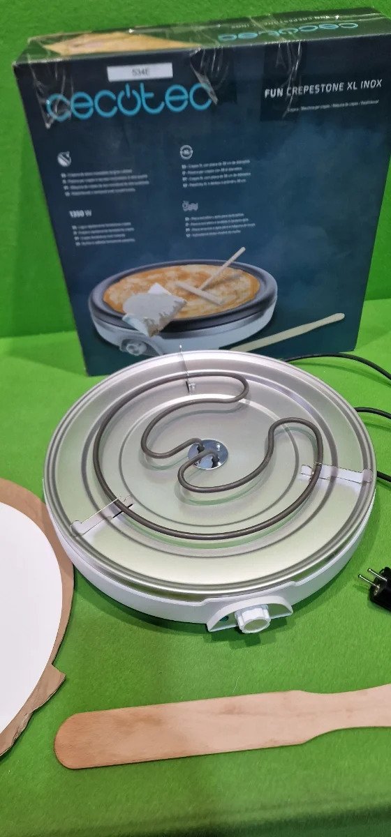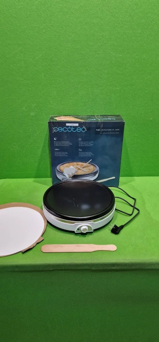 Cecotec Crepera Fun Crepestone XL INOX. 1350 W, Acero inoxidable, Placa con Revestimiento Antiadherente y extraíble, Termostato Regulable, Rodillo y Espátula Incluidos, 38 cm