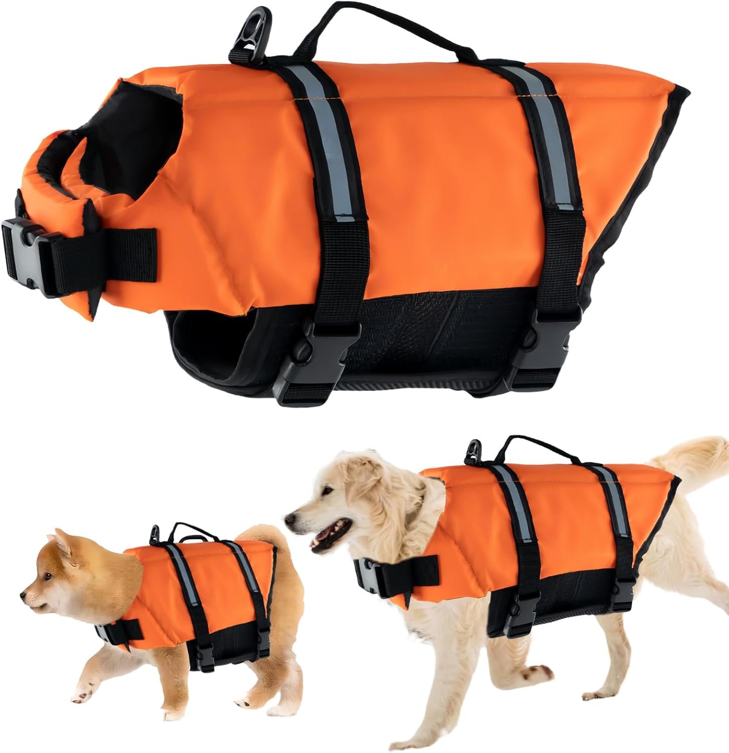 Este chaleco salvavidas para perros talla S es una opción práctica para aumentar la seguridad de tu mascota en entornos acuáticos. Su color naranja y las tiras reflectantes ayudan a localizar al perro con mayor facilidad, especialmente cuando hay oleaje, distancia o poca luz. El diseño está orientado a ofrecer una sensación de estabilidad durante el nado, con un ajuste que busca mantenerse firme en el cuerpo del animal.