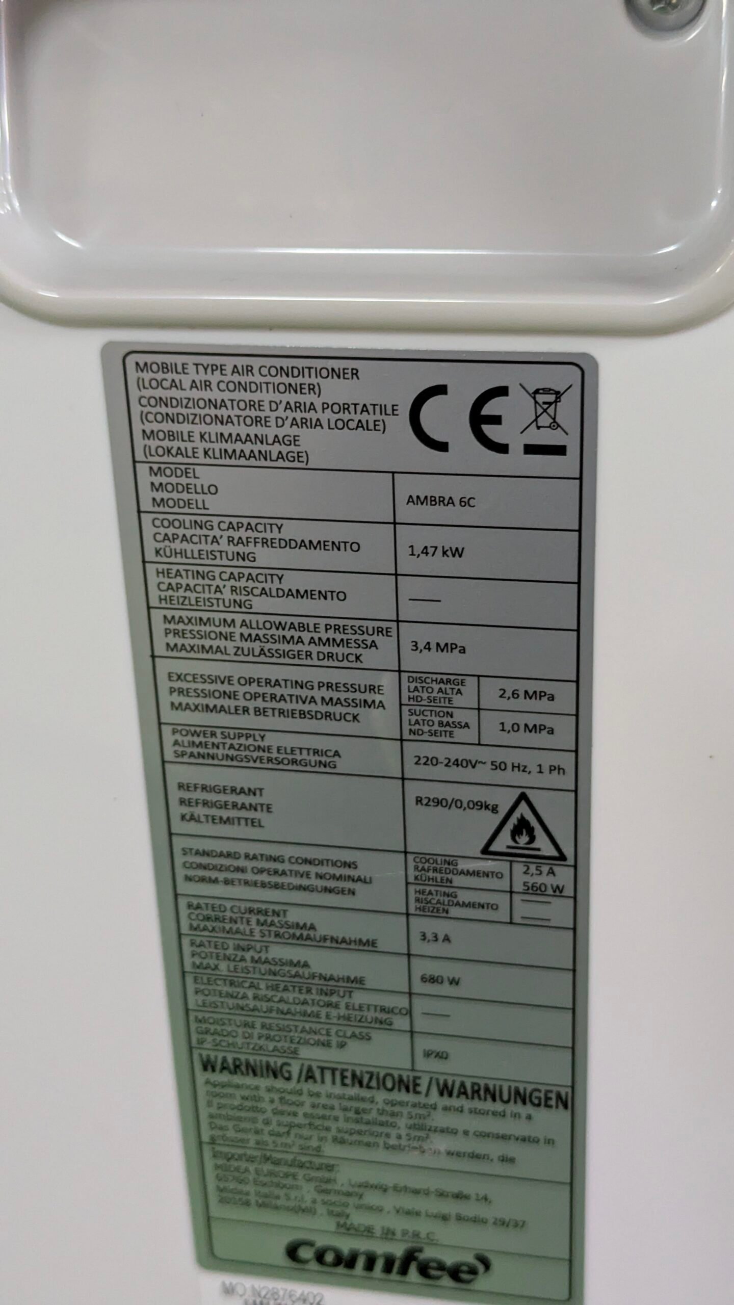 COMFEE’ Aire acondicionado portátil 5000 BTU/h, ámbar 6C, 1,4 kW, 17㎡/50 m³, 3 en 1, climatizador portátil, ventilador, refrigeración, deshumidificación, temporizador 24h, modo de sueño, función