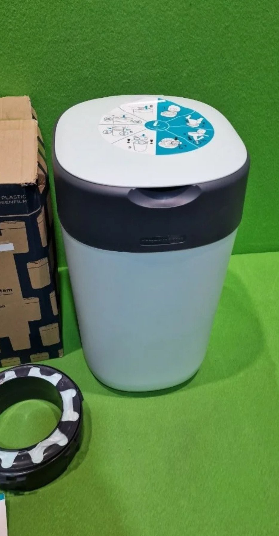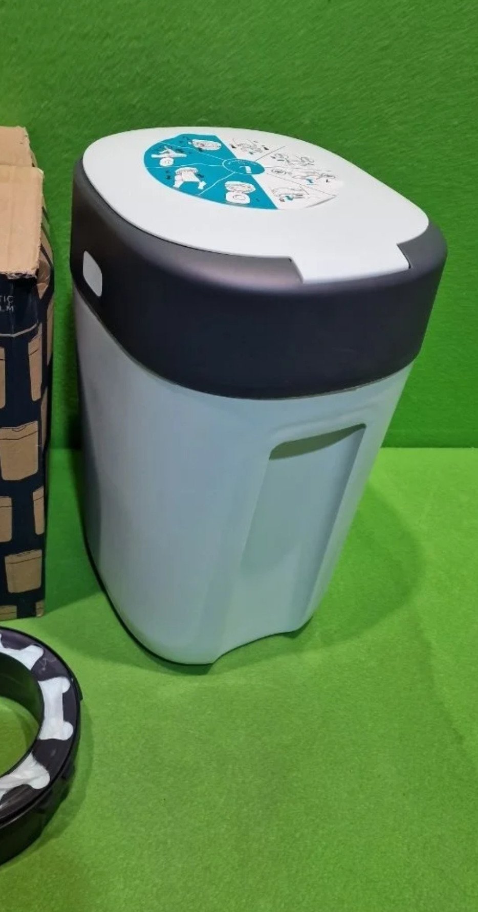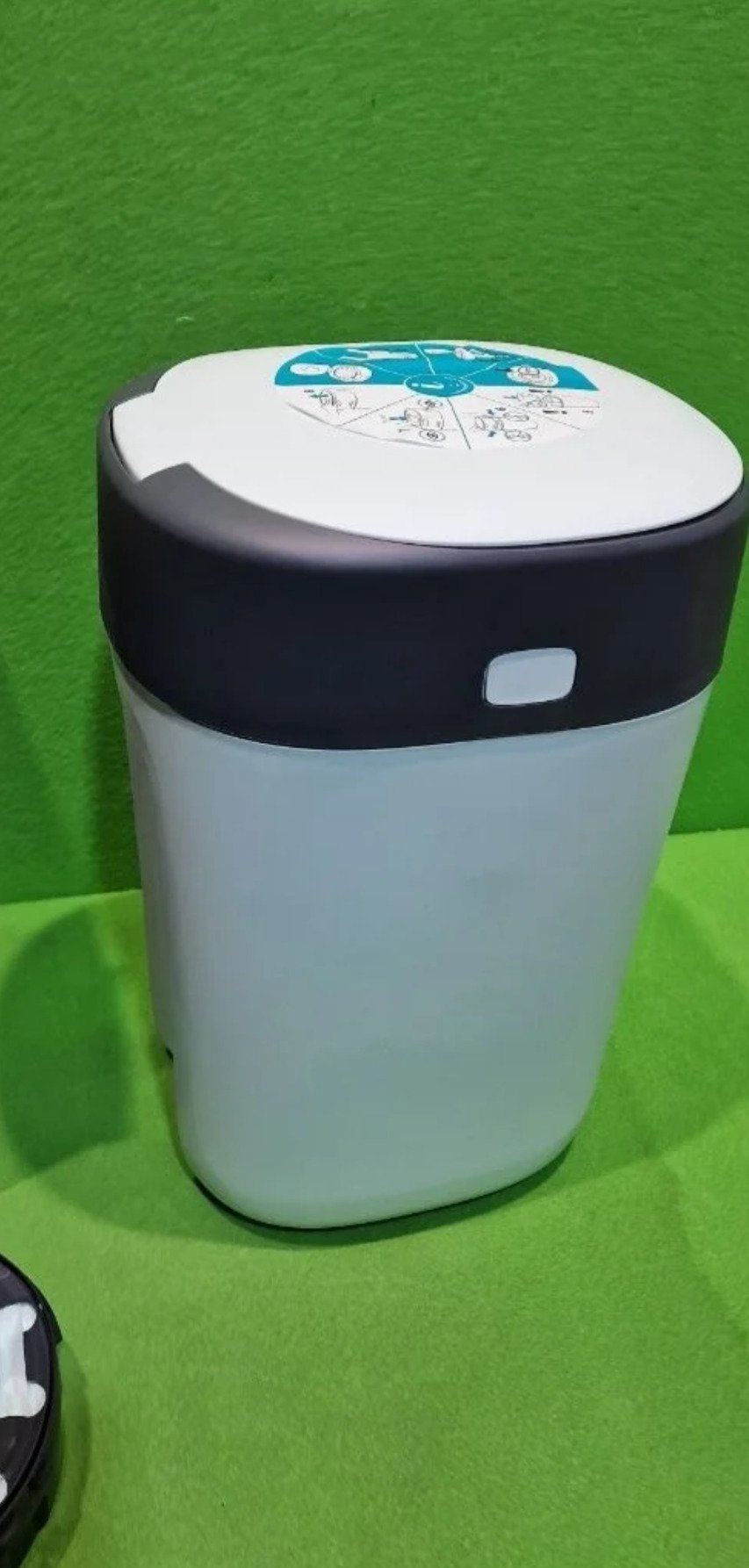 Contenedor para desechar pañales en color verde. Nuevo sistema ecológico, que incluye un recambio con película GREENFILM antibacteriana y sostenible.