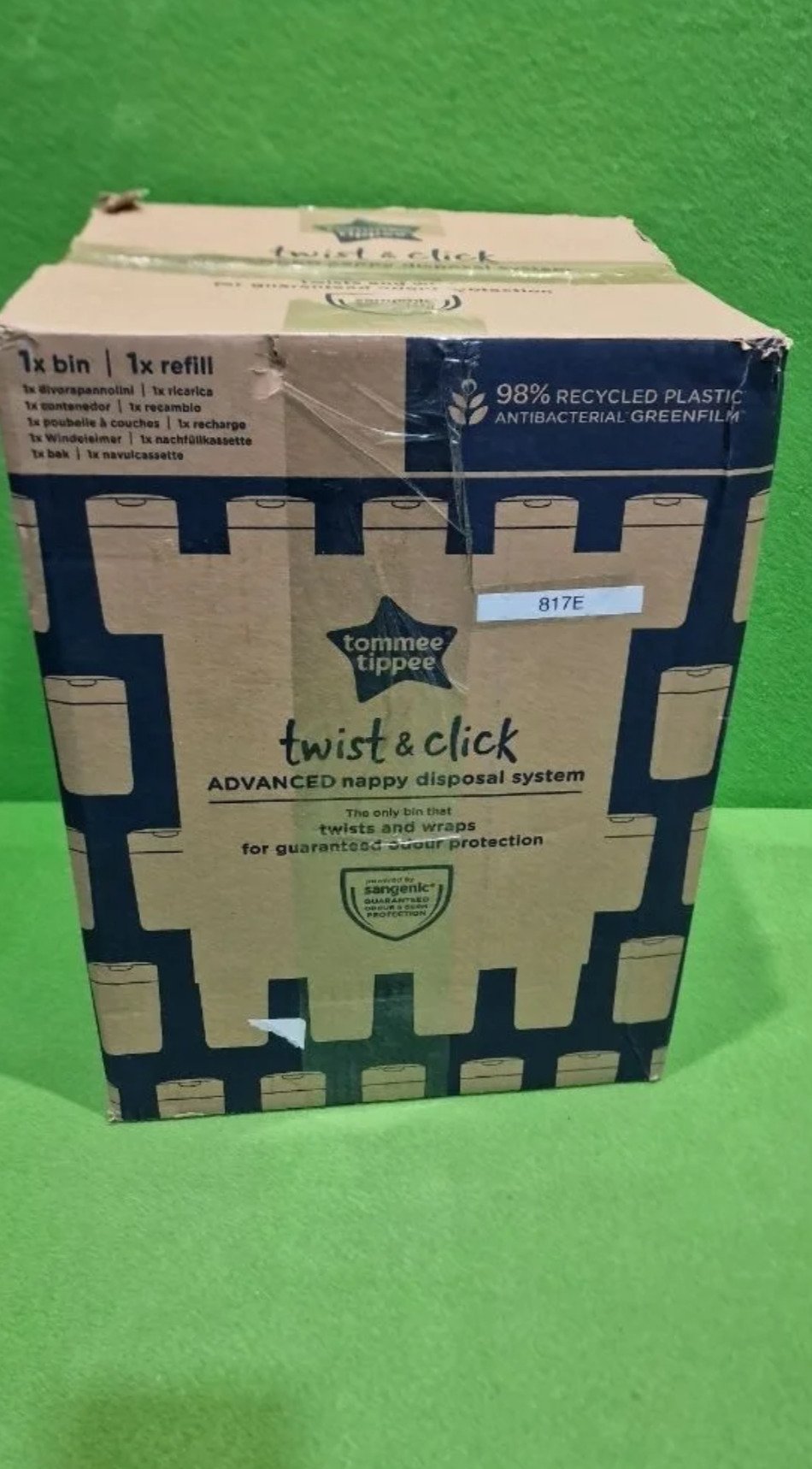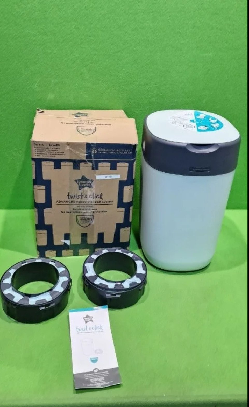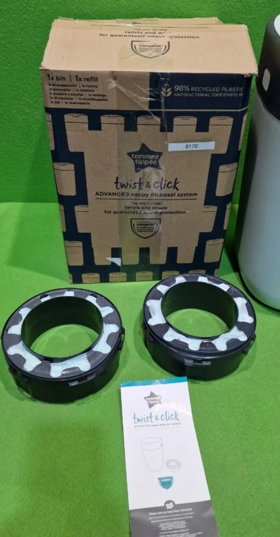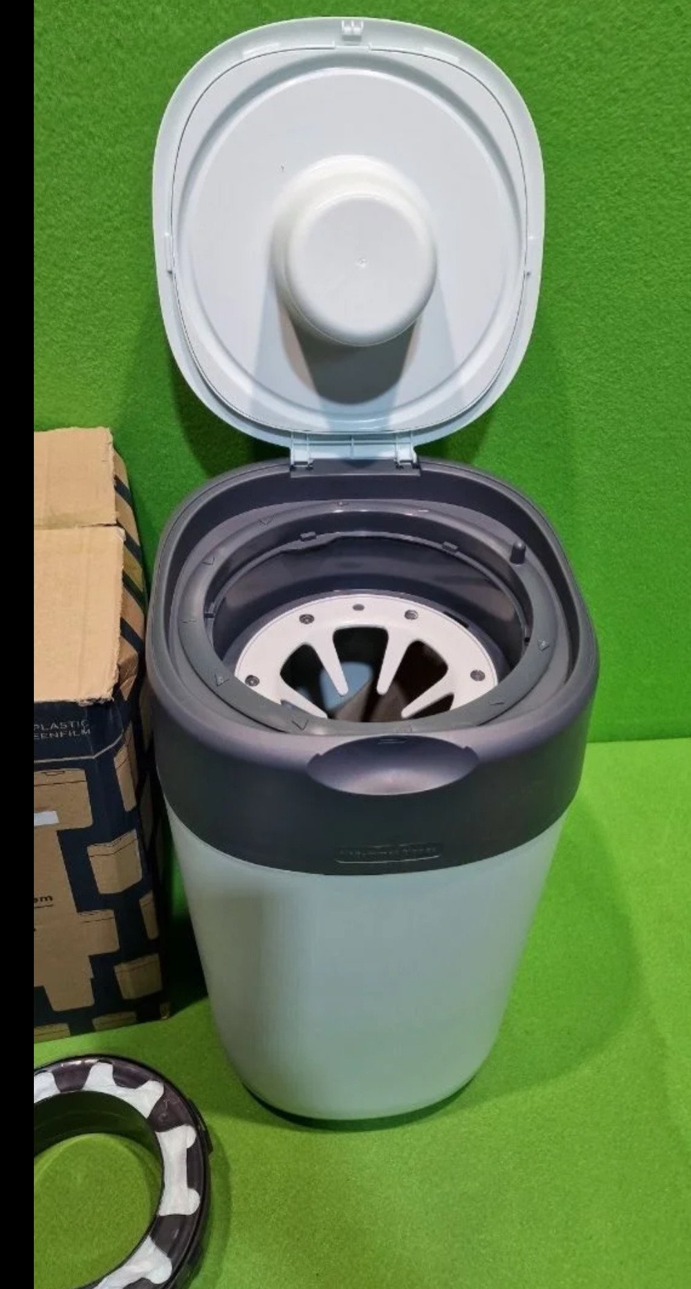 Contenedor para desechar pañales en color verde. Nuevo sistema ecológico, que incluye un recambio con película GREENFILM antibacteriana y sostenible.