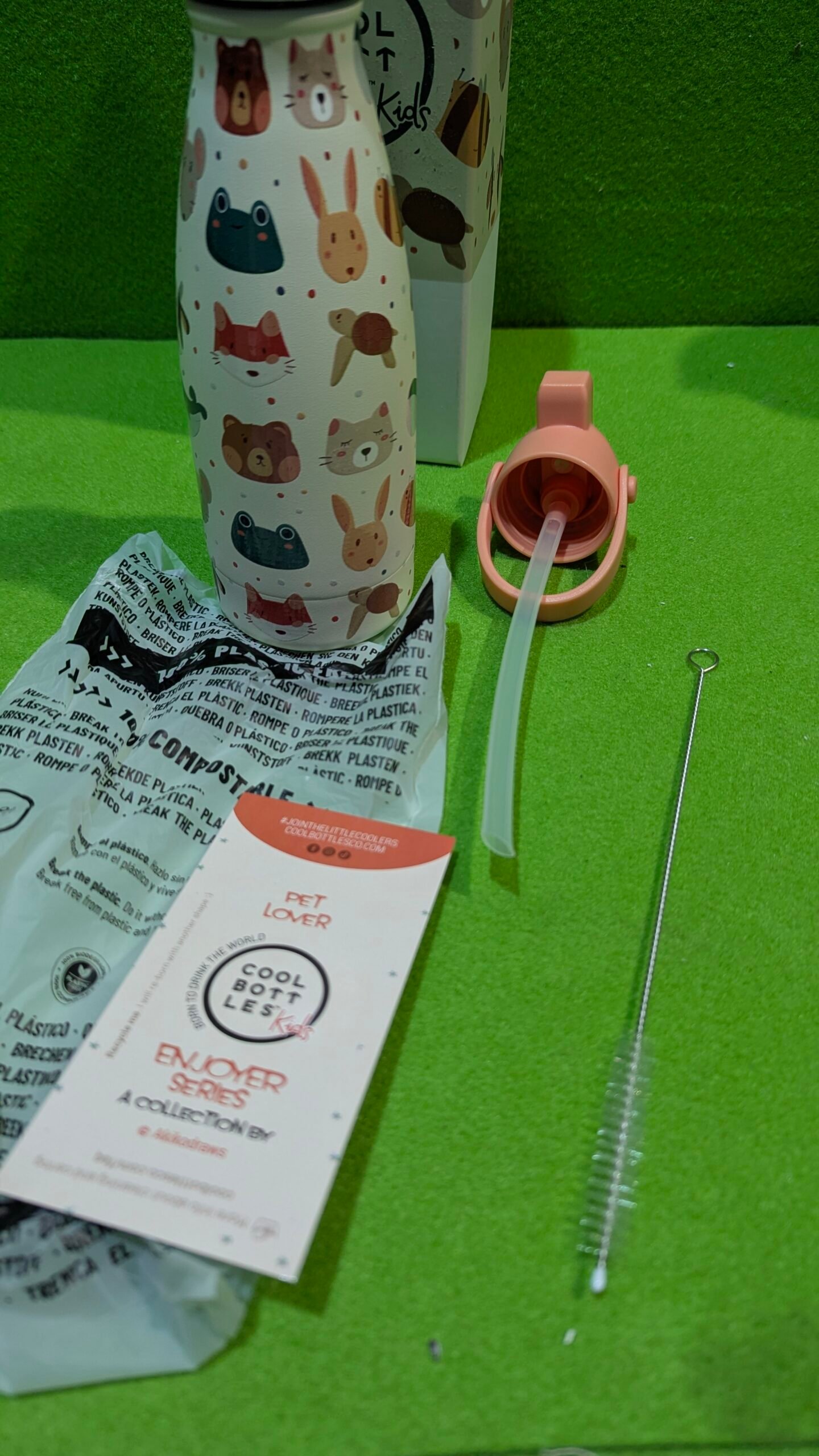 • ✅ TAPÓN ESPECIAL CON PAJITA: Las botellas de la colección Cool Bottles Kids viene con 2 tapones para adaptarse a sus necesidades al 100%. El Kids Cap tiene una pajita abatible para que beba con total comodidad. ¡Además, incluyen un limpiador especial!
