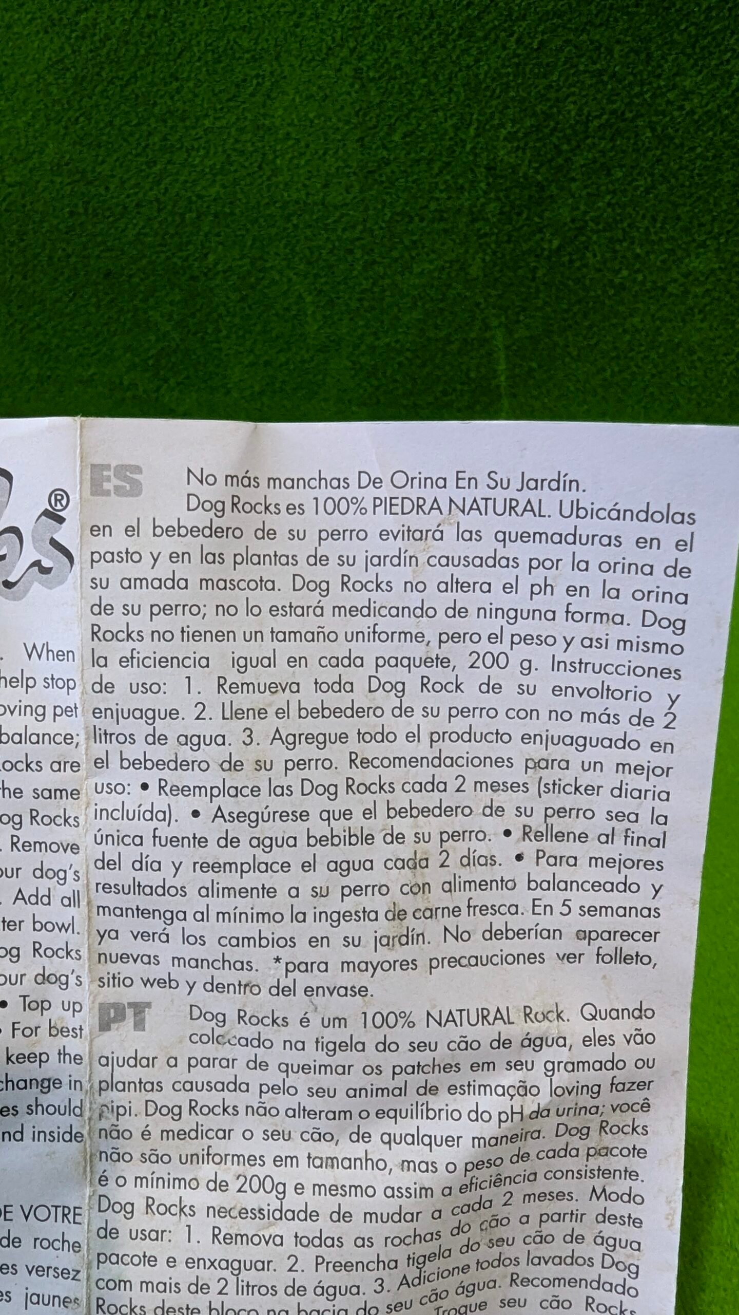 - Dog Rocks es un producto natural, directamente de la tierra, y es necesario lavarlo antes de usar.