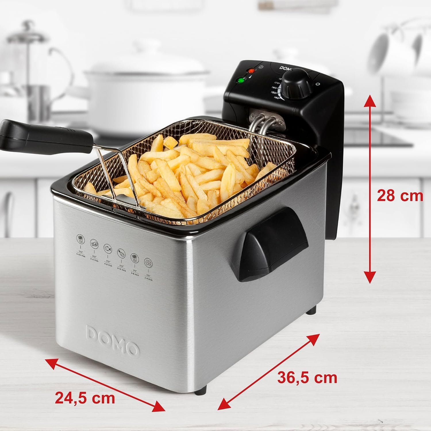 Domo Freidora de acero inoxidable DO465FR, 3000 W, 4 litros