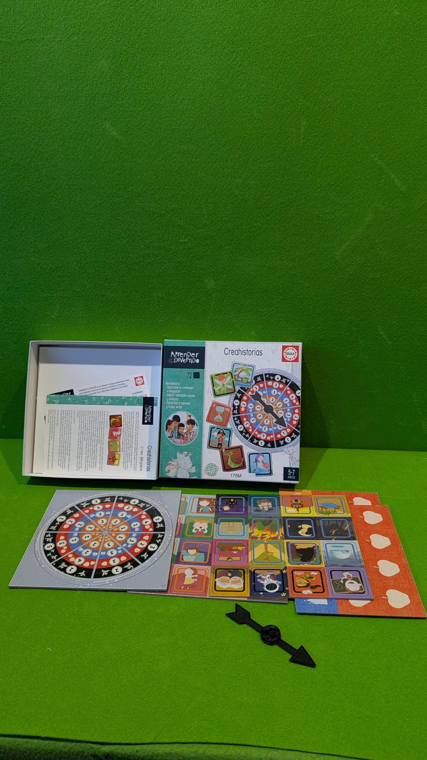 - Contenido: 72 cartas, 1 ruleta, instrucciones.