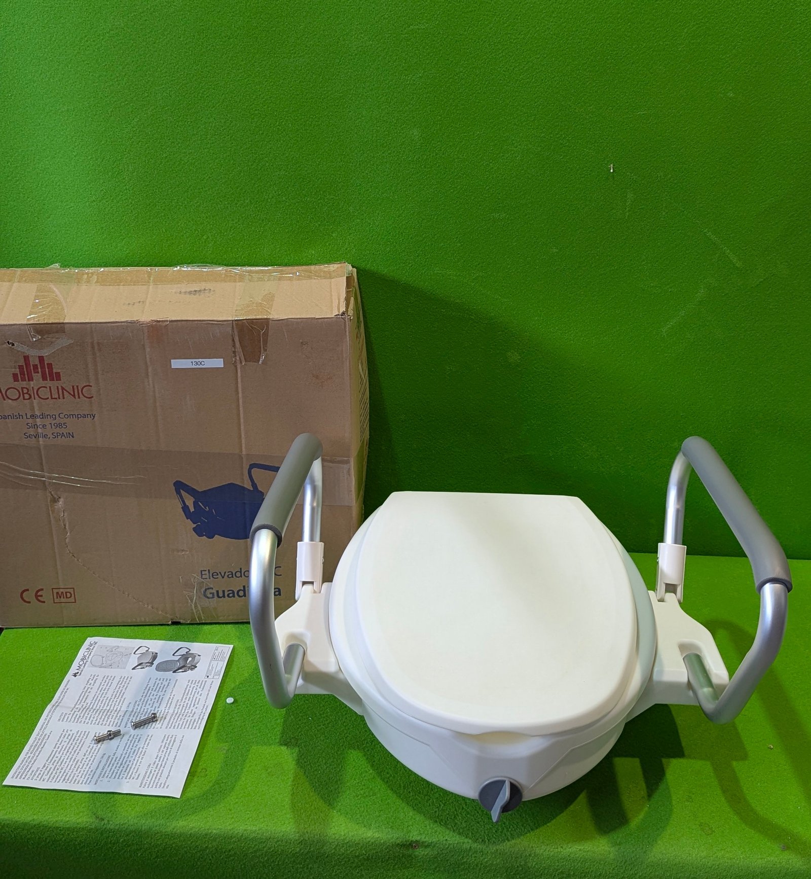 Mobiclinic®, Elevador WC para Adultos, 17cm, con reposabrazos abatibles y Acolchados, Tapa, Adaptable a inodoros ovalados, Ergonómico, Ligero, Seguro, Marca española, Modelo guadiana