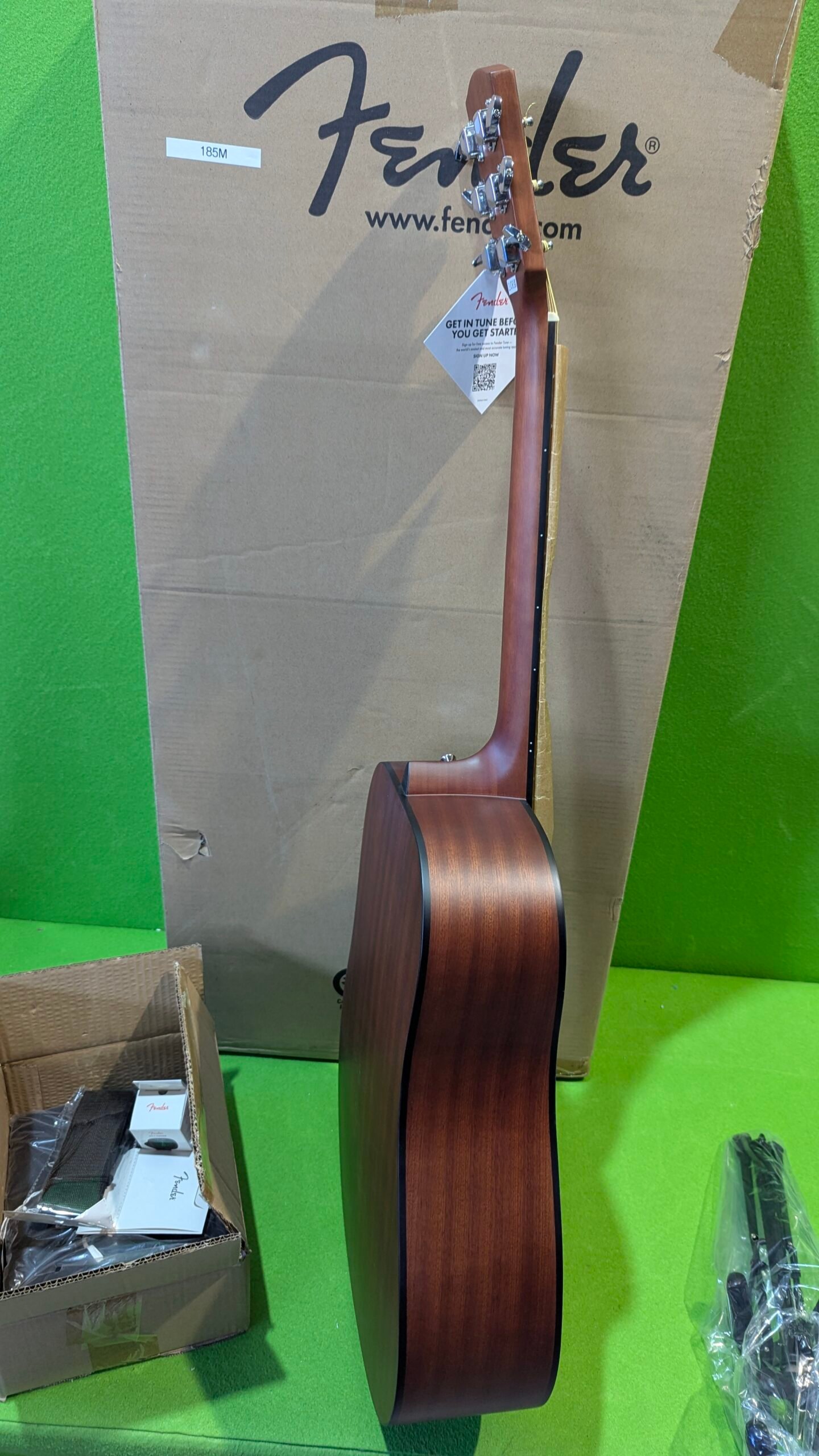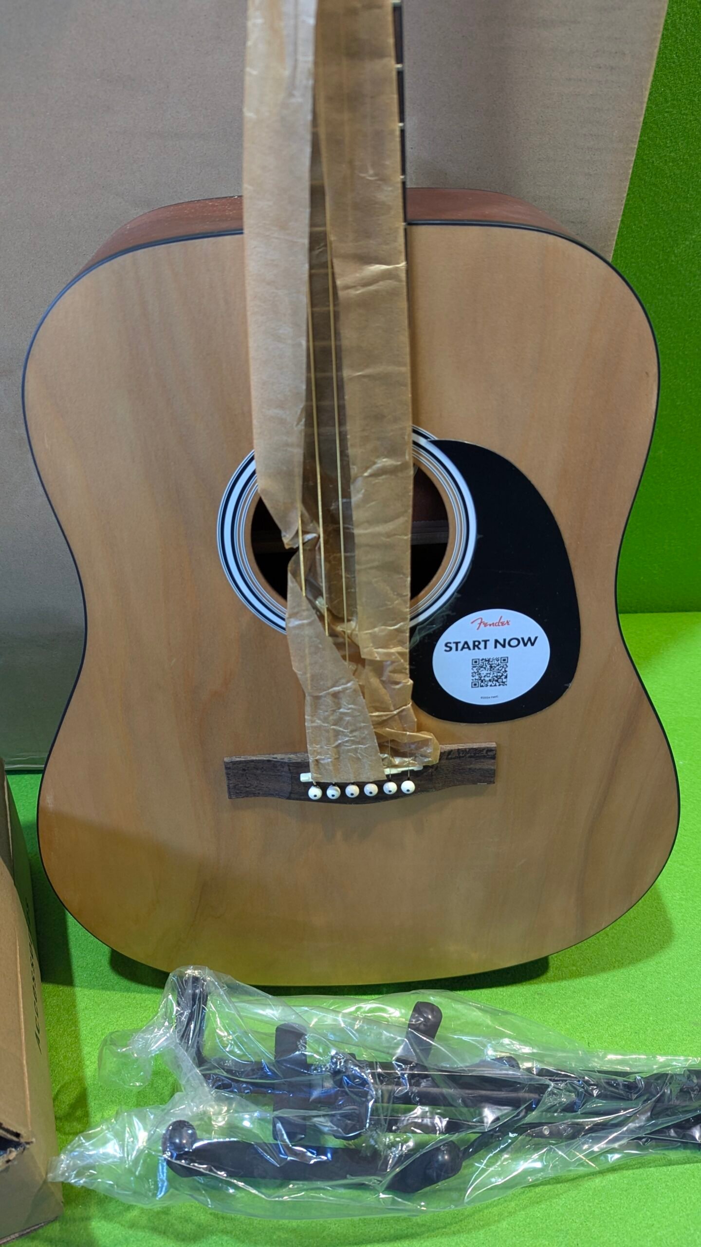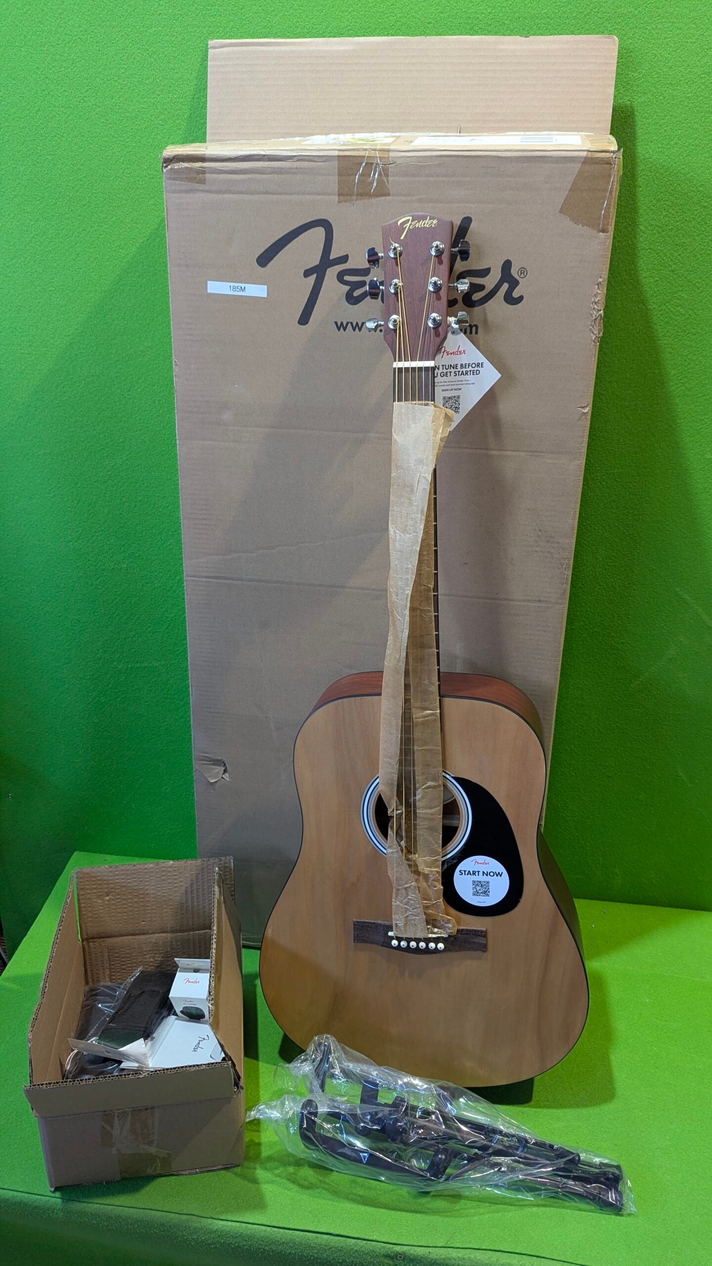 Fender guitarra acústica California Debut Redondo en acabado natural, funda, correa, cable, púas, soporte para guitarra