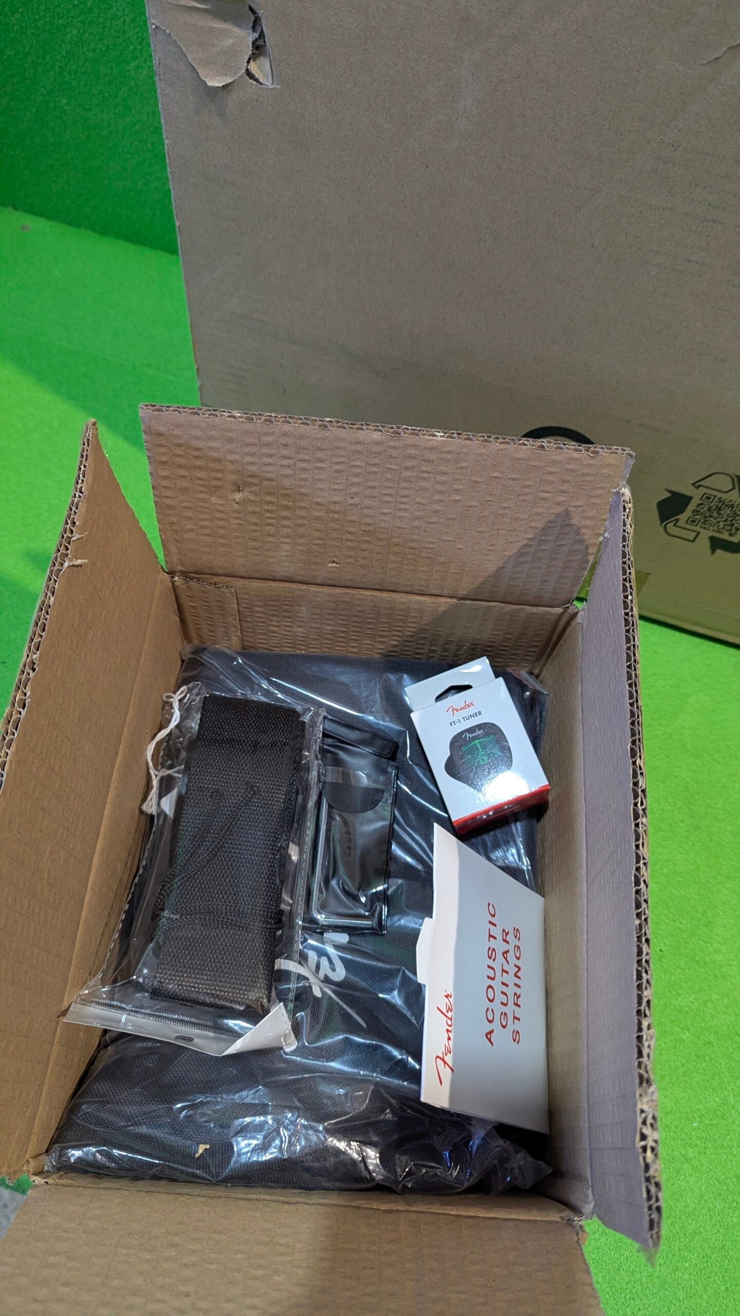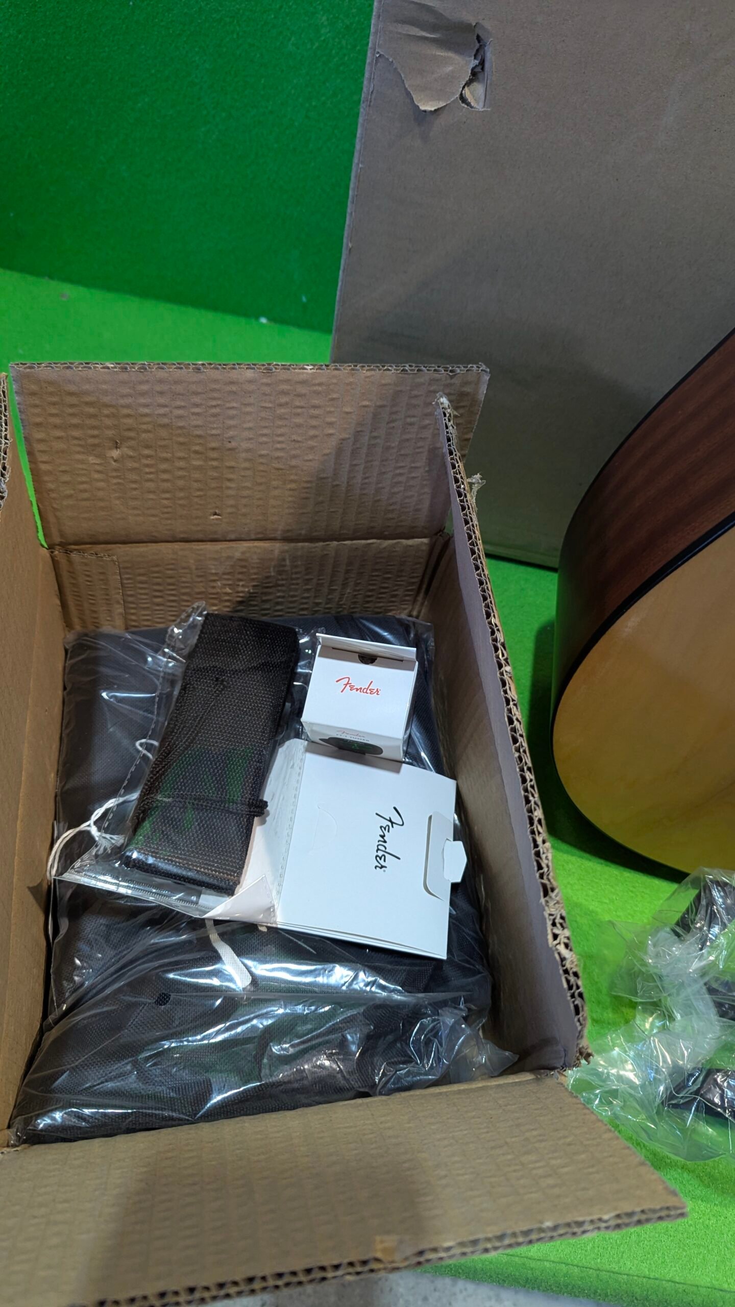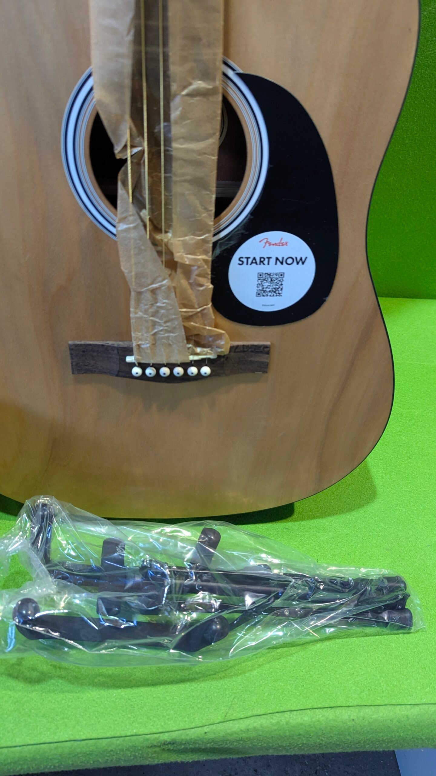 Fender guitarra acústica California Debut Redondo en acabado natural, funda, correa, cable, púas, soporte para guitarra