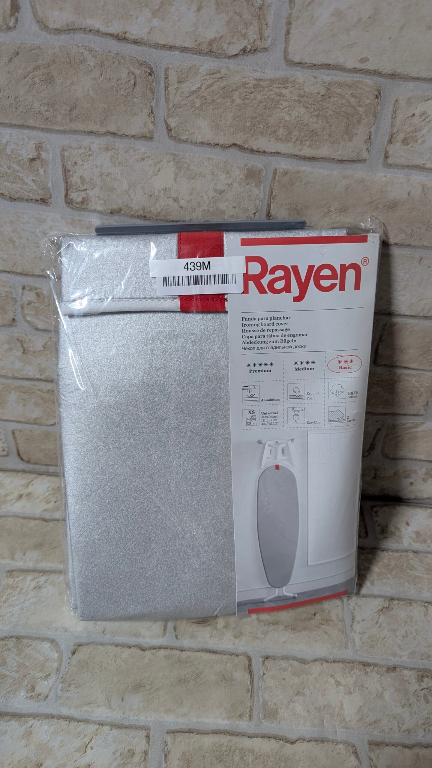 Rayen | Funda universal para tabla de planchar Fácil ajuste con clip| 2 capas: espuma y tejido 100% algodón | Calidad aluminio | Gama básica| Tamaño: 115 x 38 cm, Gris