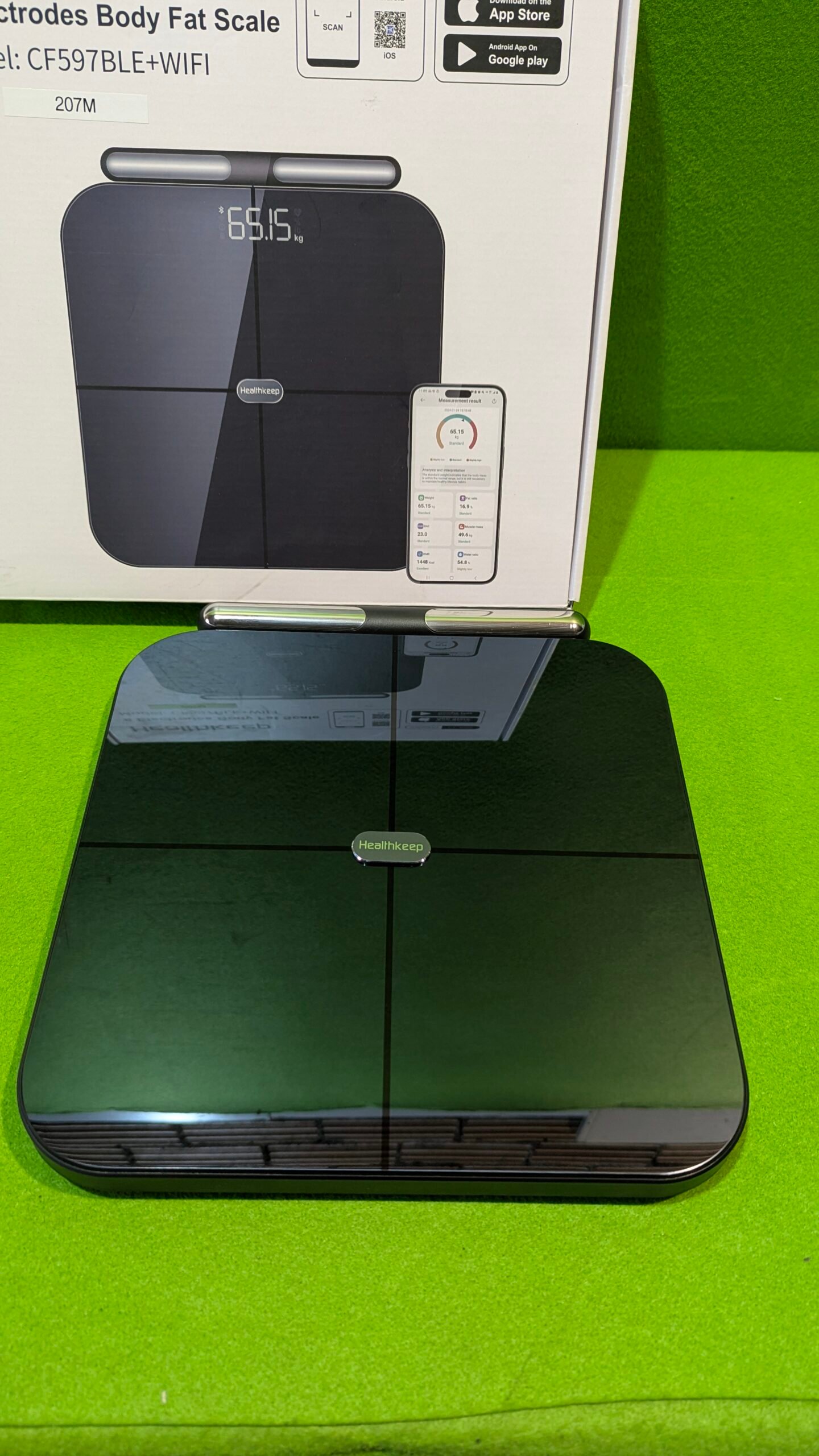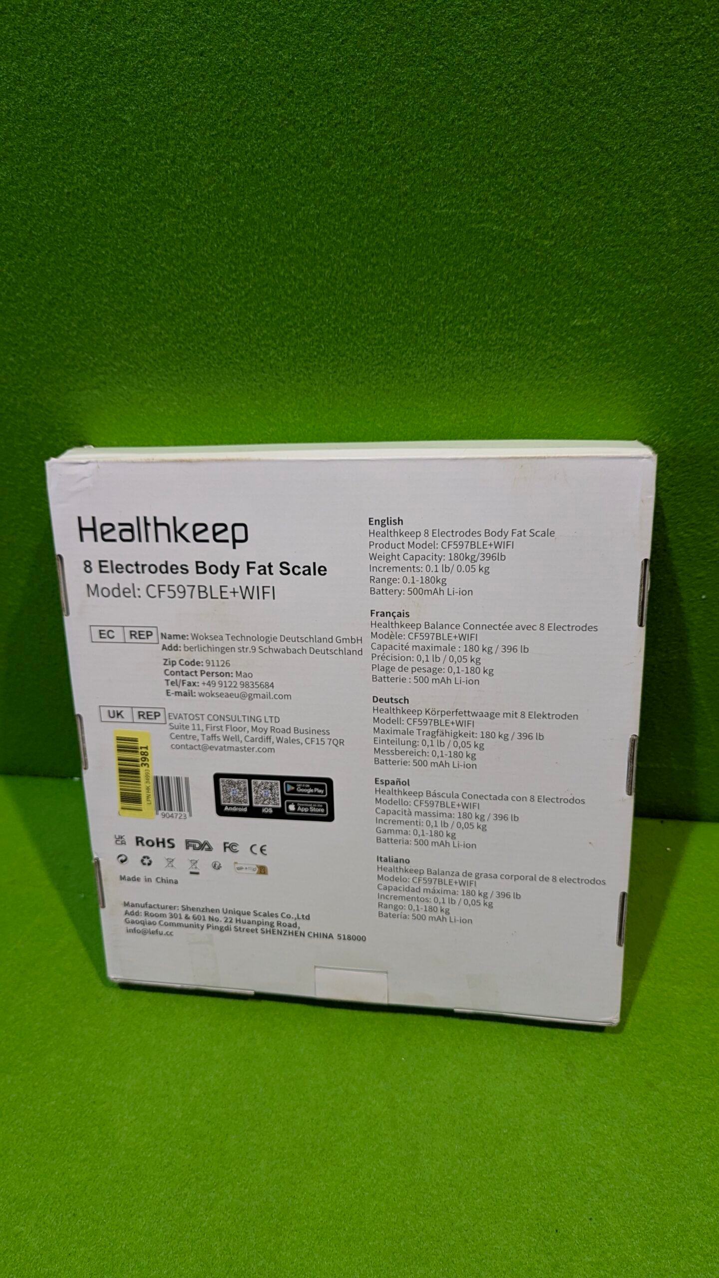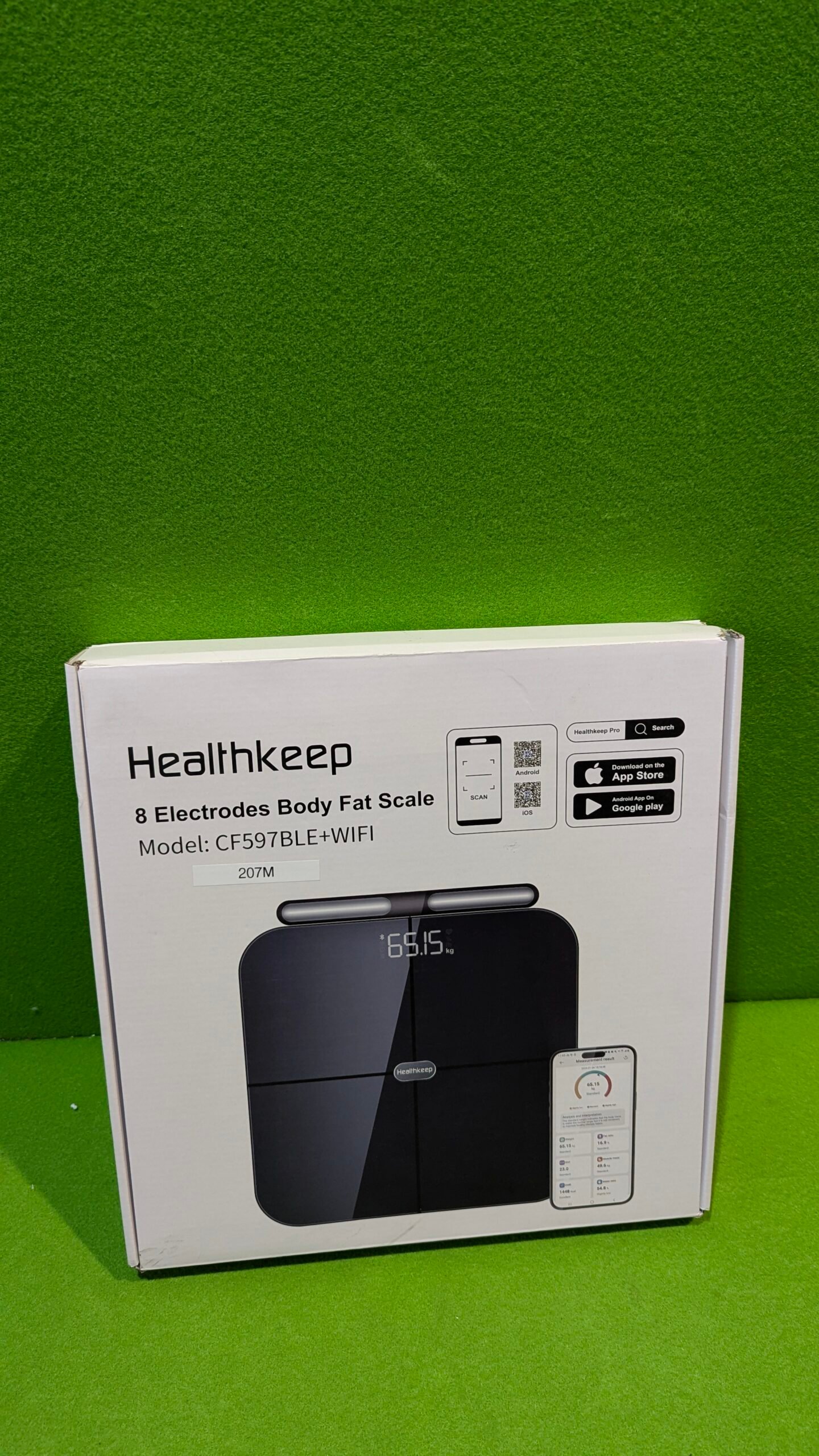 Healthkeep – Báscula conectada WIFI y Bluetooth con 8 electrodos de alta precisión, 46 datos corporales para aplicaciones incluidas Andriod e iOS, capacidad 180 kg/400 lb, 30 x 30 cm