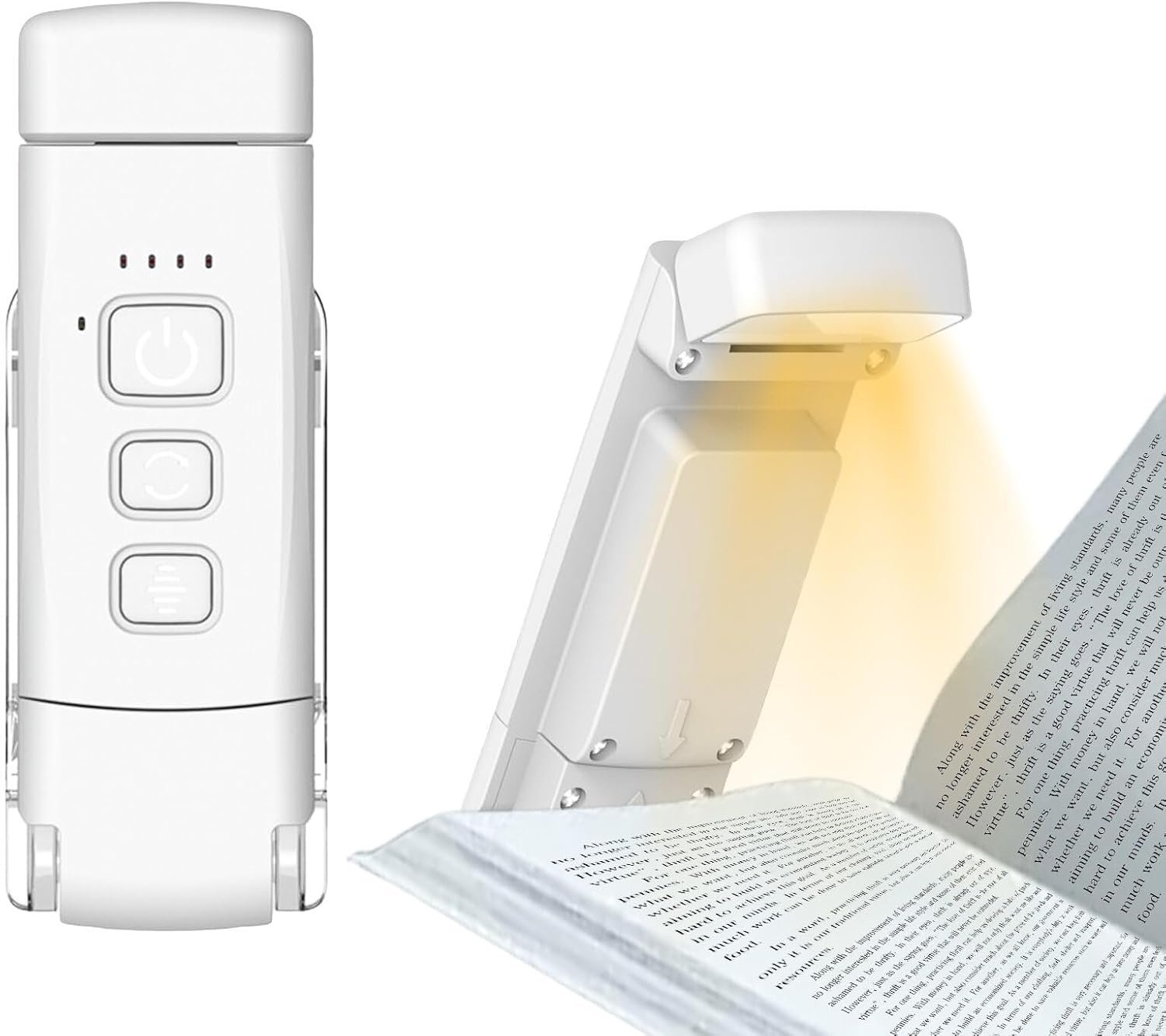 Lámpara de lectura con pinza para libros y carga USB, pensada para leer con comodidad en la cama, de viaje o en espacios con poca luz. Incorpora brazo flexible y cabezal orientable para dirigir la luz donde la necesitas. Ofrece 3 modos de color y 5 niveles de brillo para ajustar el ambiente, desde una iluminación cálida ámbar hasta blanco frío. Autonomía de hasta 80 horas (según el modo de uso).