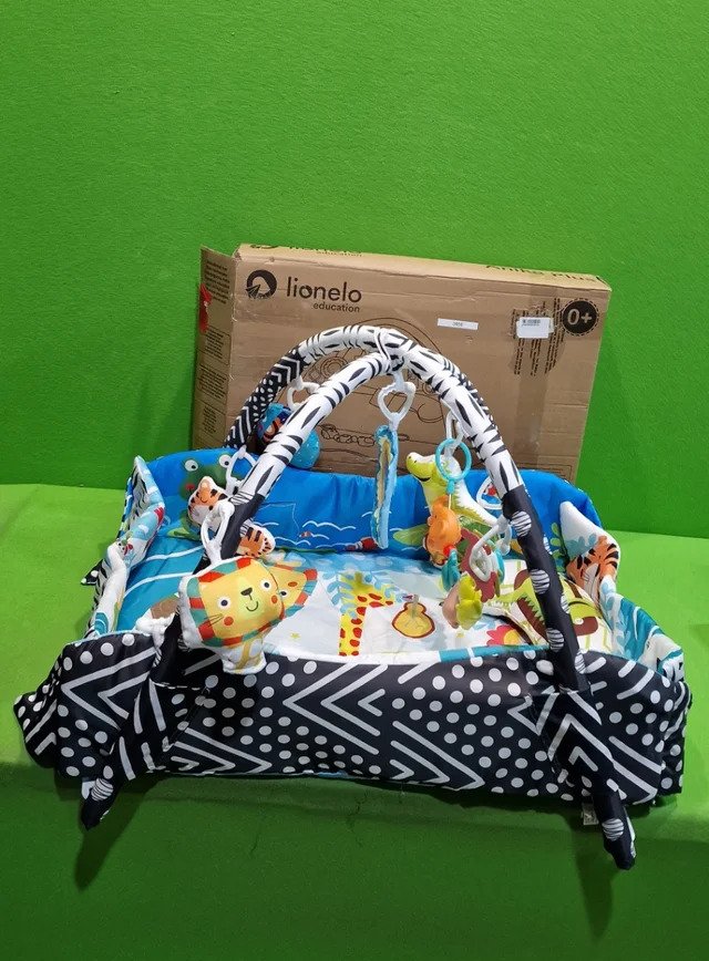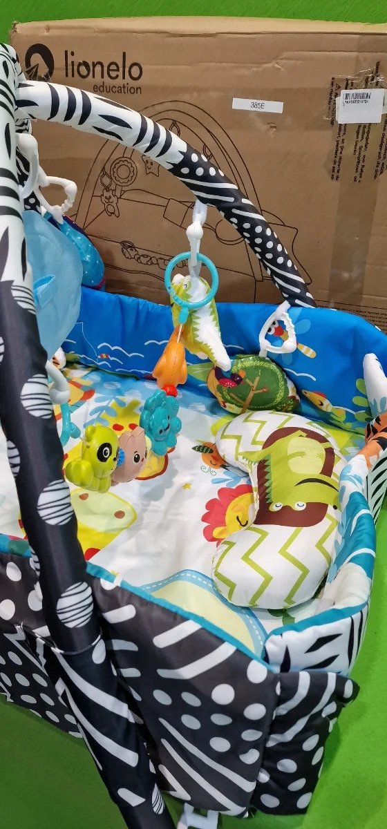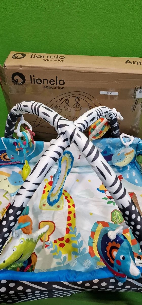 LIONELO Anika 2en1 Gimansio de Actividades 4 juguetes colgantes sonajeros 2 arcos Manta juegos bebé Función de parque de juegos Almohada de apoyo para bebe Educativa