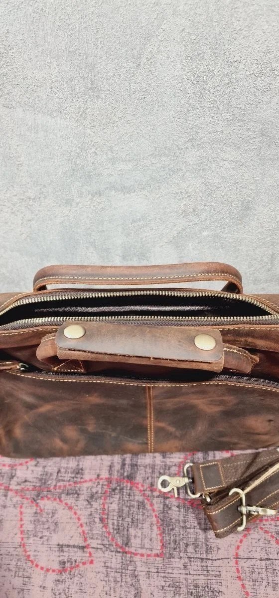 Maletín/bolsa de hombro Kattee de aspecto vintage, de piel, para portátil de 17 pulgadas EL REGALO PERFECTO PARA LOS AMANTES DEL ESTILO Tamaño: 43 * 11 * 30 cm (17 * 4.3 * 11.8inch) Color: Cobrizo, Café Peso: 1,5 kg 100% de cuero increíble Crazy Horse auténtico