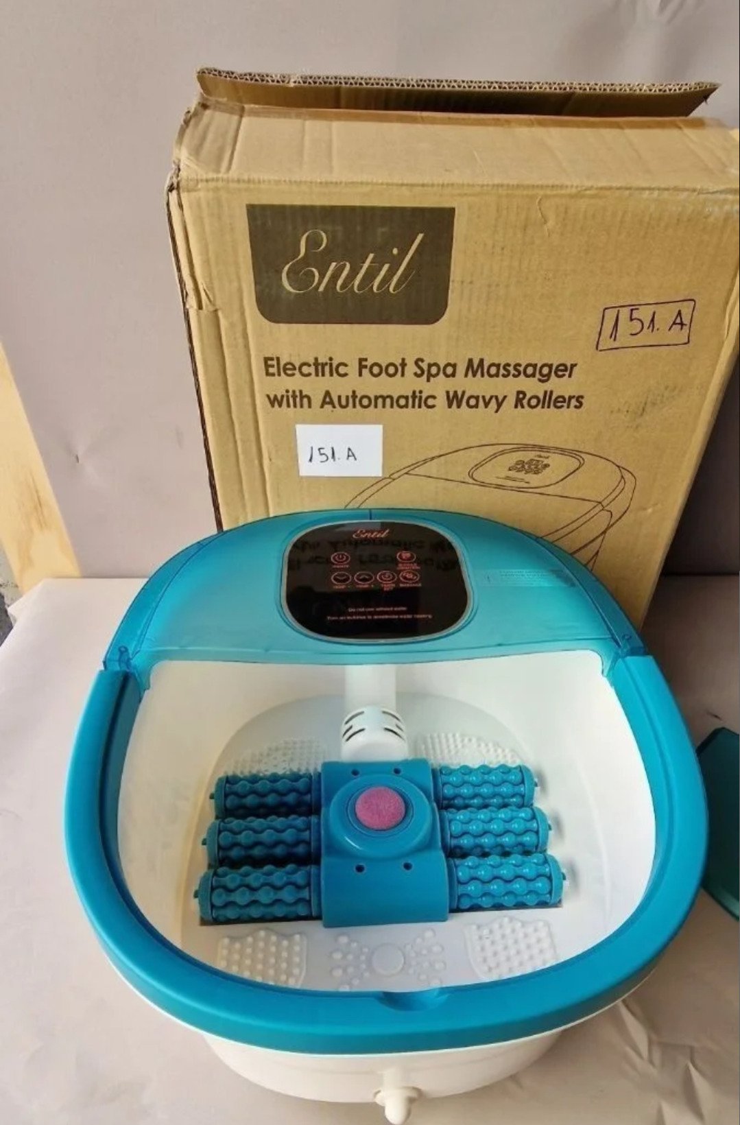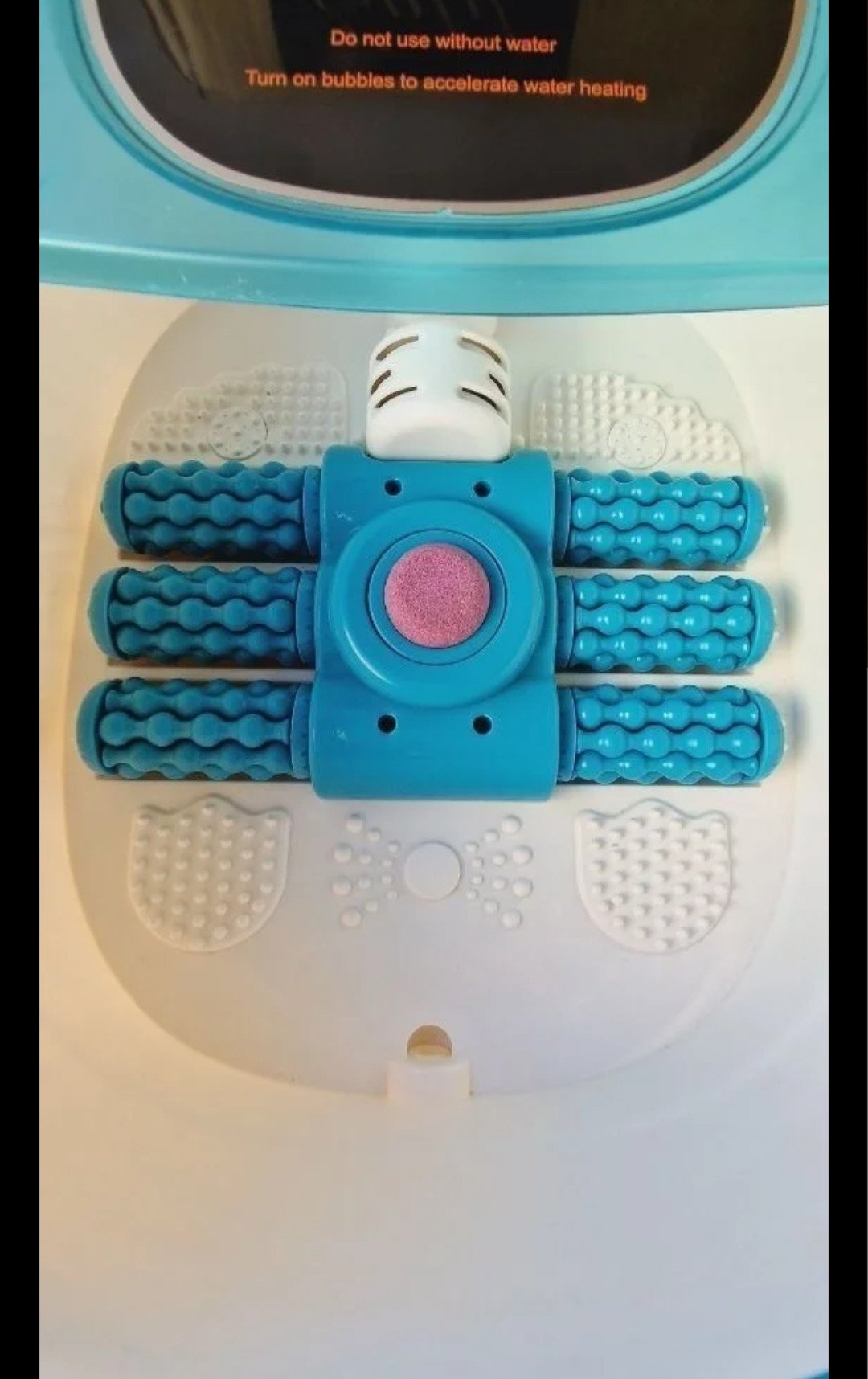 Masajeador de pies está equipado con 6 rodillos de masaje automáticos, calefacción, masaje de vibración y burbujas, temporizador y ajuste de temperatura, con piedra de afilar pedicura