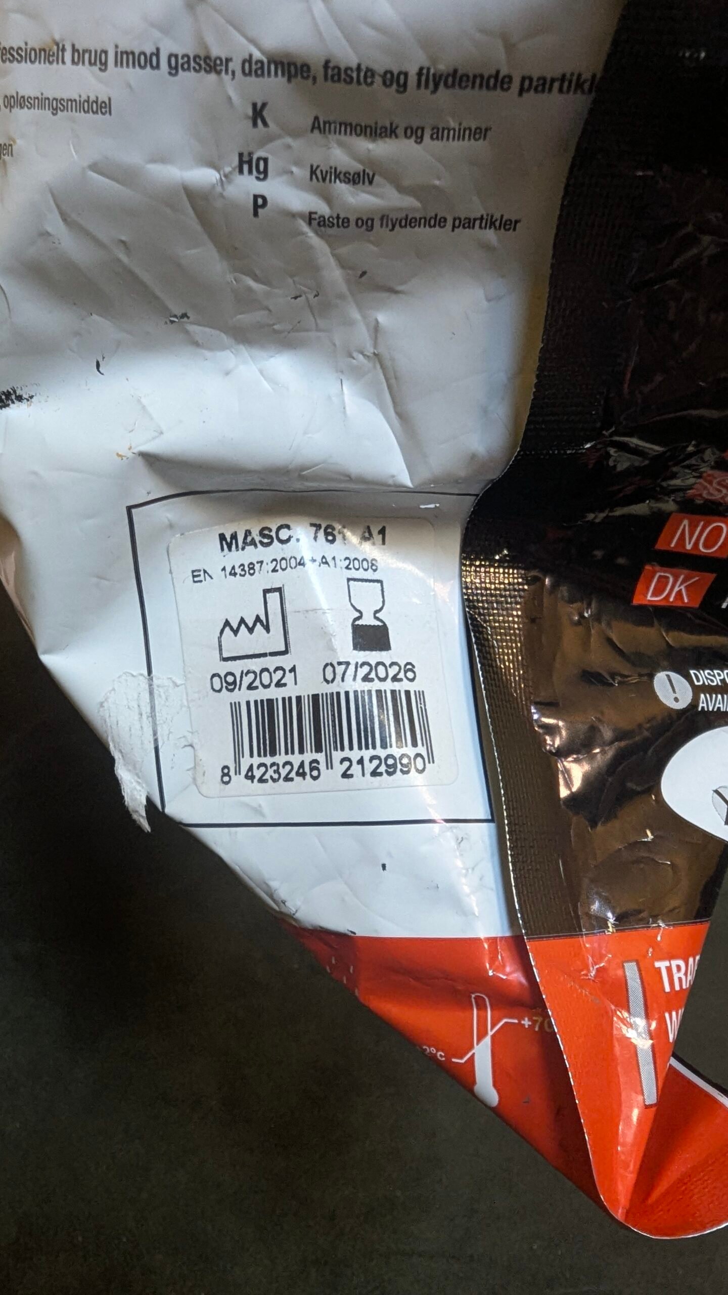 Incluye filtro A1, protección contra gases y vapores orgánicos con punto de ebullición > 65 ºC.