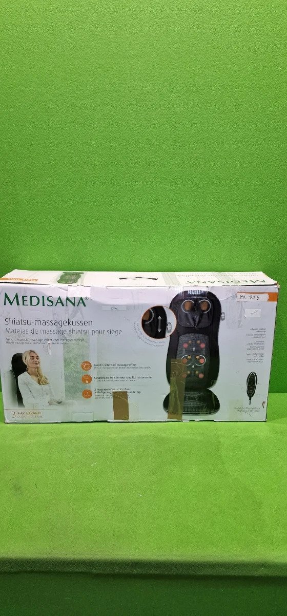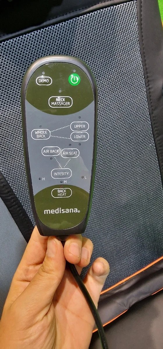 Medisana MC 825 Almohadilla de masaje Shiatsu para espalda y cuello, almohadilla de asiento de masaje con acupresión, masaje de cuello, función de calor, 3 intensidades, función de luz roja