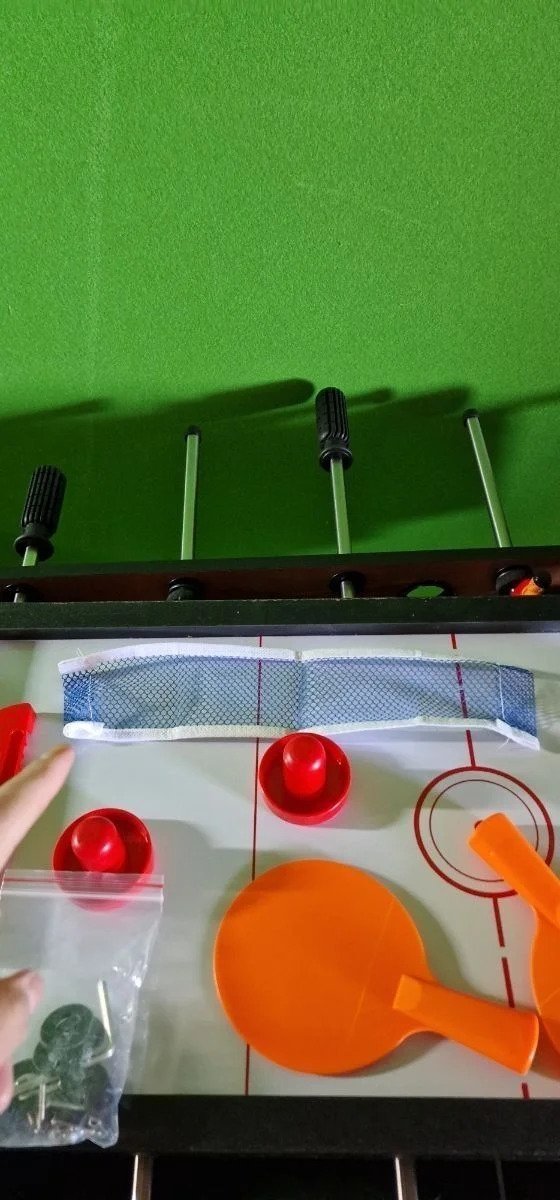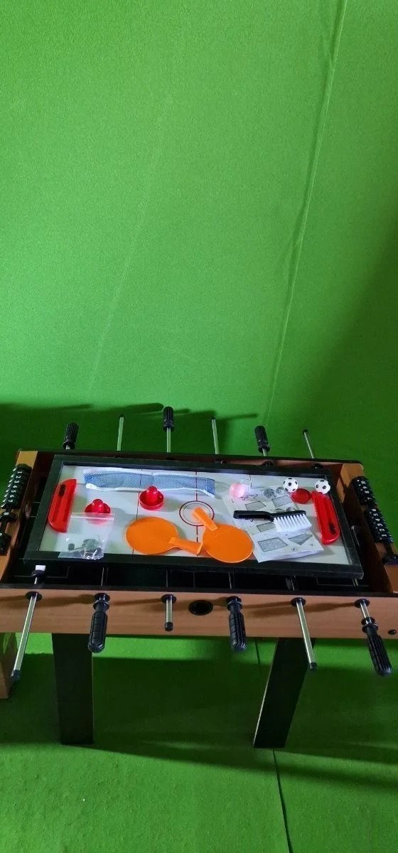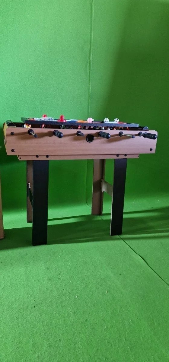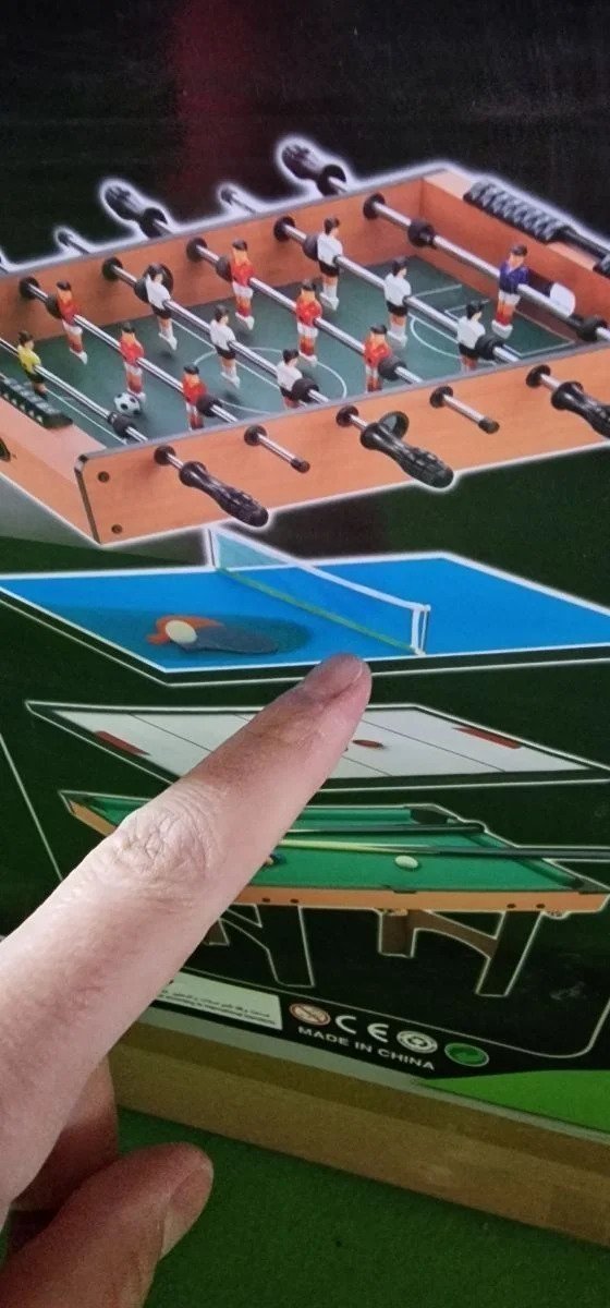 Mesa 4 juegos en 1: Billar, ping-pong, hockey y futbolín Estructura de madera resistente de 73 cm de altura, desmontable en 4 juegos deportivos diferentes Incluye todos los accesorios necesarios para los 4 deportes Montaje sencillo por parte de un adulto, incluye manual de instrucciones Recomendado a partir de 5 años
