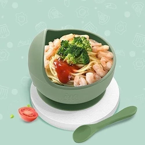 Miracle Baby Cuencos Silicona con Ventosa,Niños Cuencos Antideslizante Cuencos de Alimentación,Mantel Individual Silicona de grado alimenticio para Bebé,verde