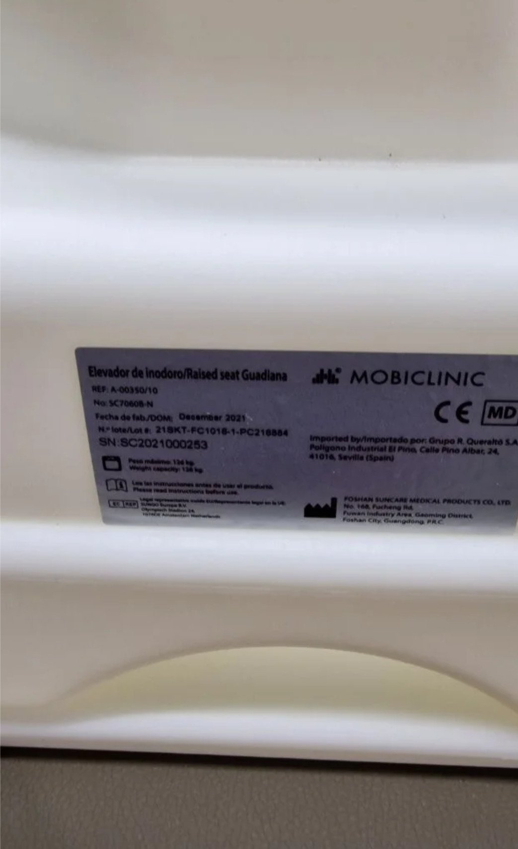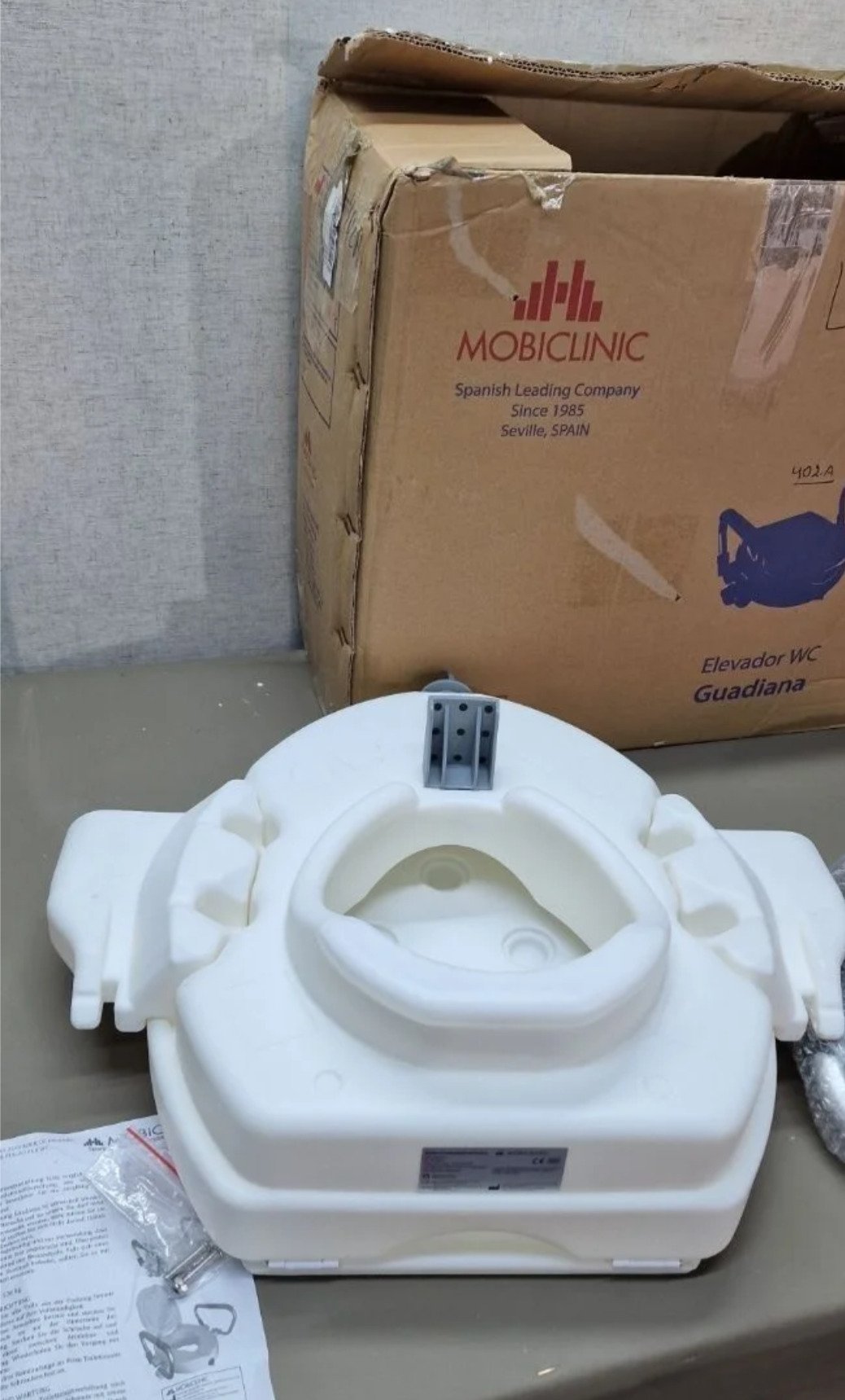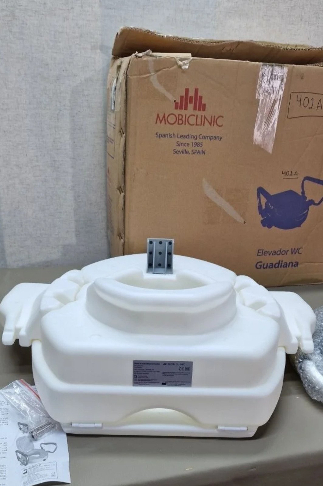 Mobiclinic, Elevador WC para adultos con reposabrazos, Guadiana, con Tapa, Marca Española, Reposabrazos abatibles y Acolchados, Ayuda de baño para Ancianos y minusválidos, Ergonómico, Ligero, Blanco