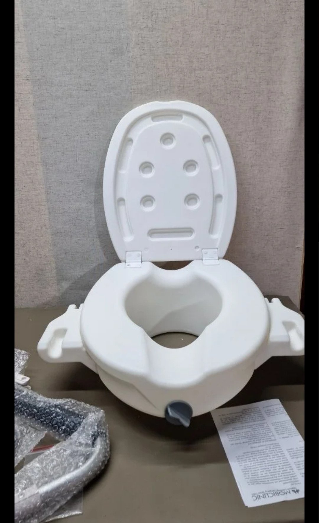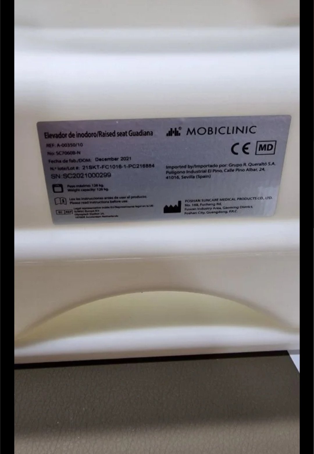 Mobiclinic, Elevador WC para adultos con reposabrazos, Guadiana, con Tapa, Marca Española, Reposabrazos abatibles y Acolchados, Ayuda de baño para Ancianos y minusválidos, Ergonómico, Ligero, Blanco