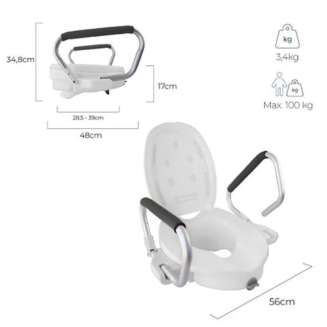 Mobiclinic, Elevador WC para adultos con reposabrazos, Guadiana, con Tapa, Marca Española, Reposabrazos abatibles y Acolchados, Ayuda de baño para Ancianos y minusválidos, Ergonómico, Ligero, Blanco Este Asiento WC ortopédico cuenta con unos cómodos reposabrazos abatibles y acolchados para facilitar sentarse e incorporarse del inodoro, así como para generar estabilidad y confianza al usuario