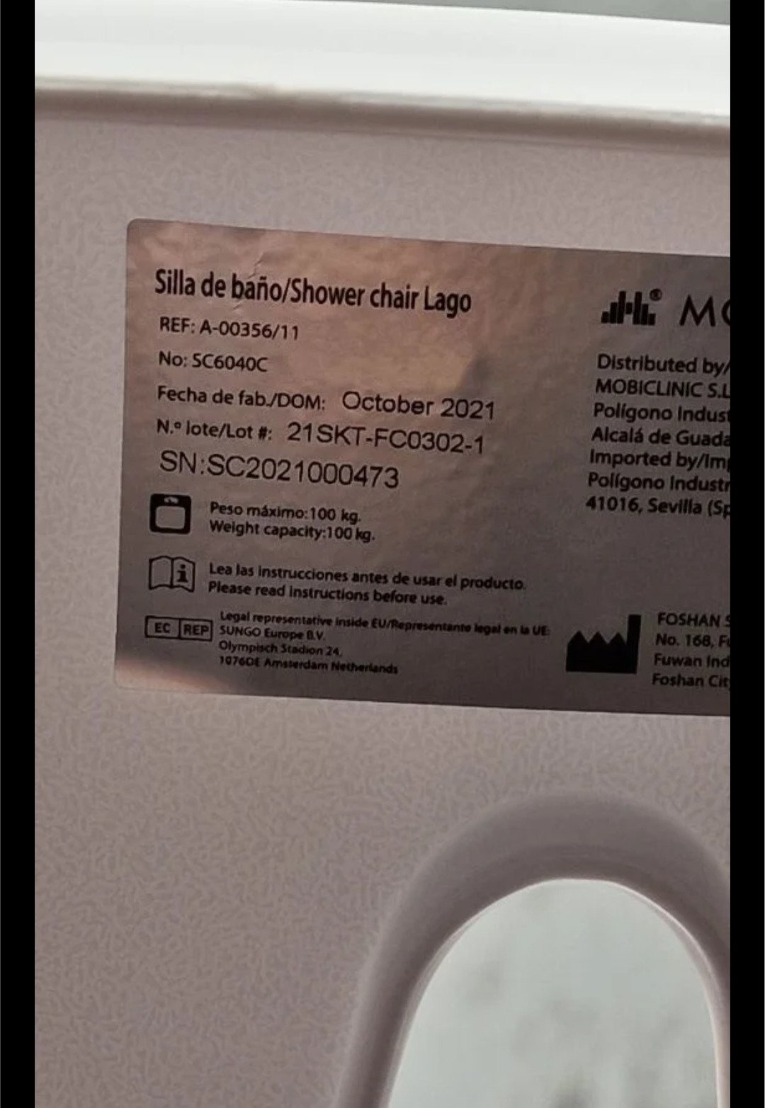 Mobiclinic, Silla de Baño Giratoria, Lago, Reposabrazos y Respaldo, Giro de 360º, Anatómica, Marca Española, Resistente al Agua, para Personas Mayores, con discapacidad o Movilidad Reducida