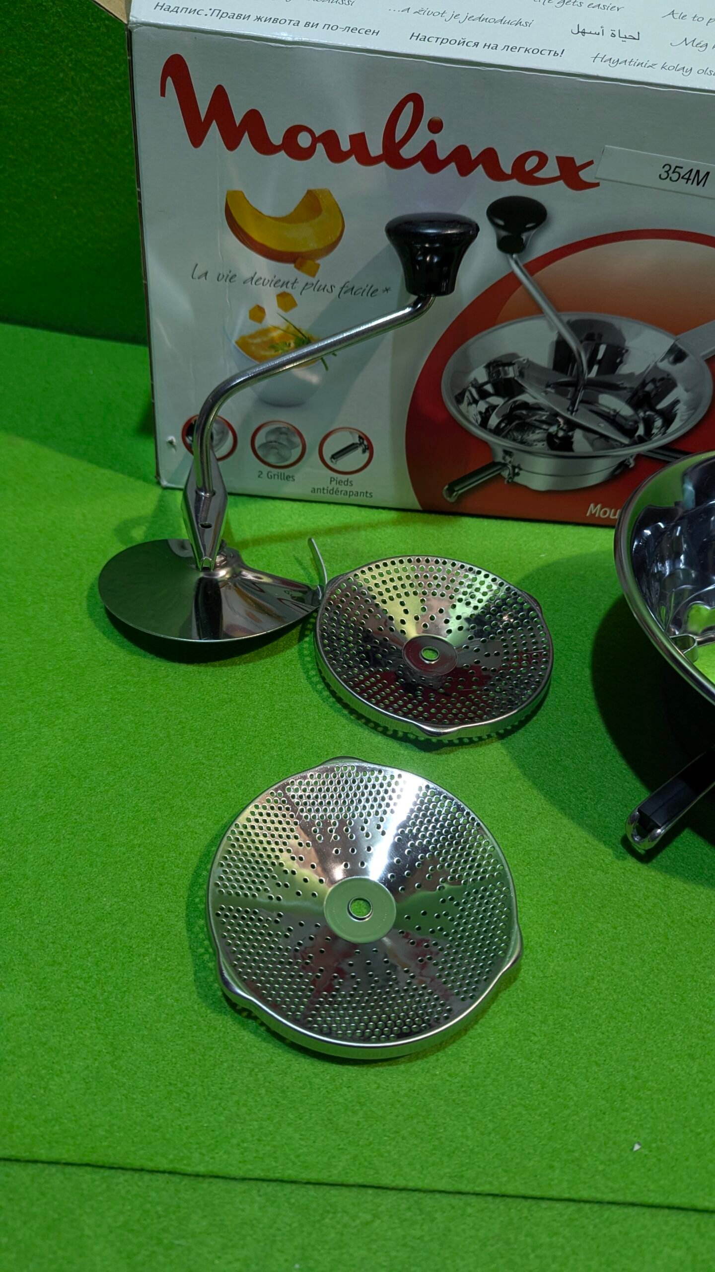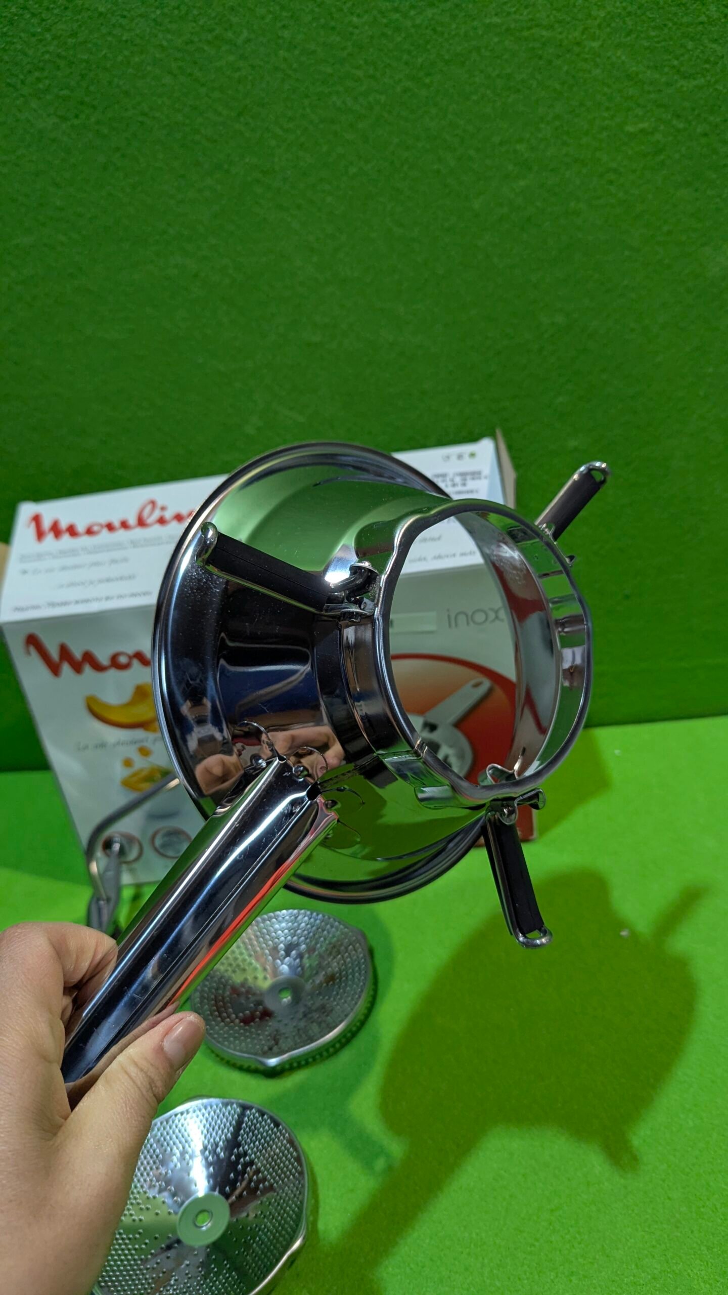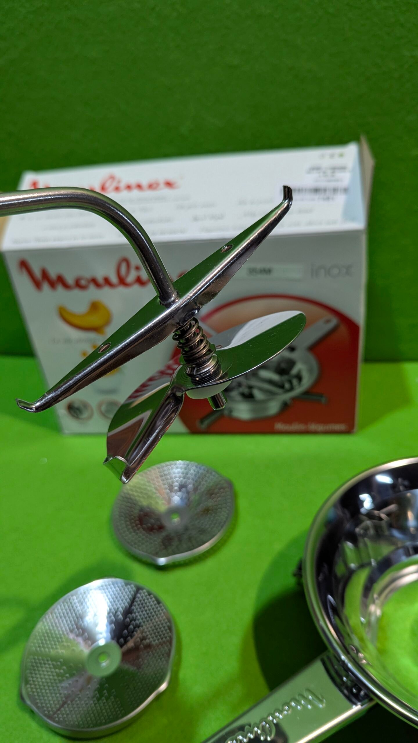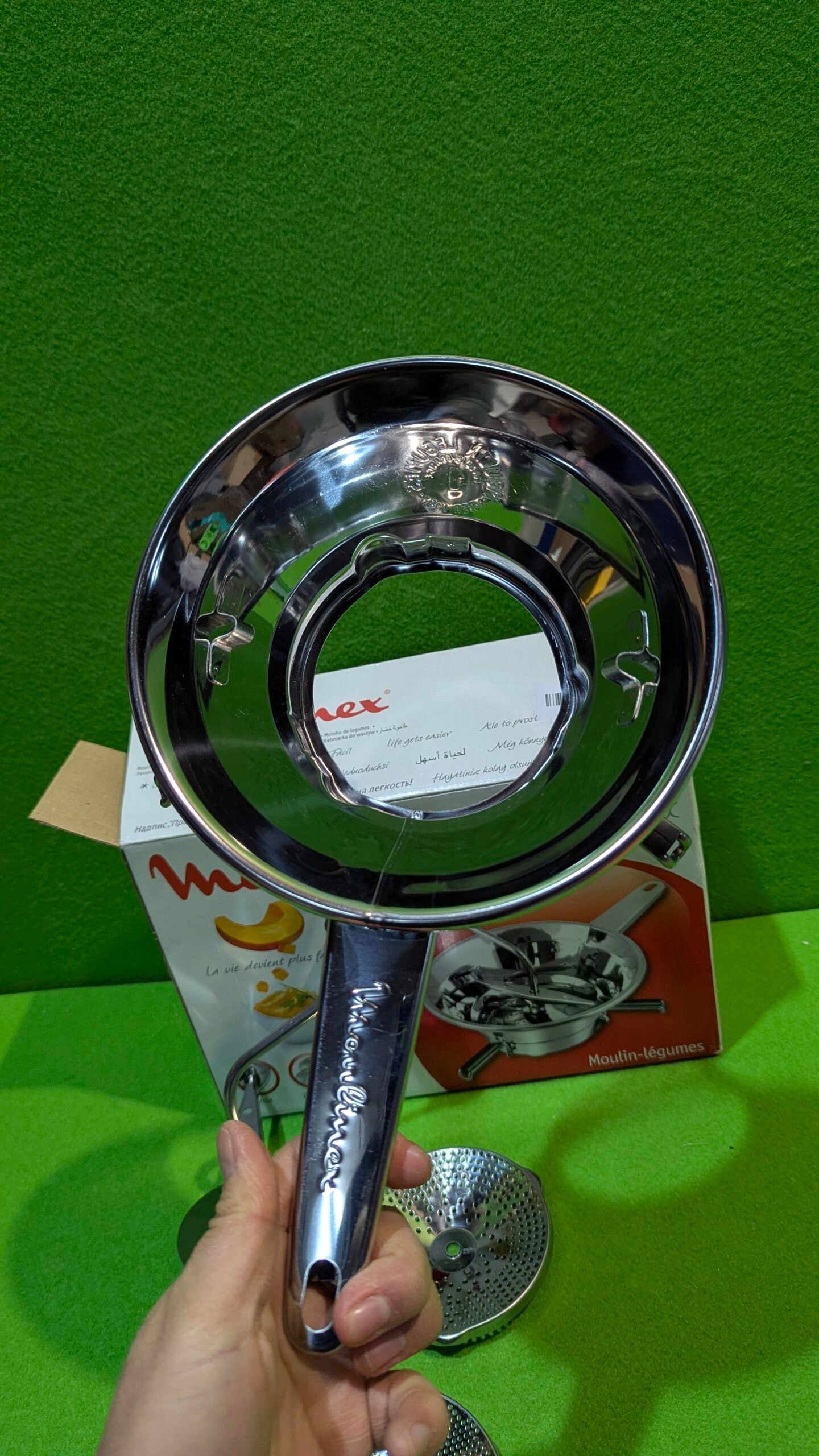 Moulinex Classic – Molinillo de verduras manual, incluye dos parrillas, acero inoxidable, tamaño pequeño, apto para lavavajillas, fácil de usar para purés, sopas y compotas, A40106