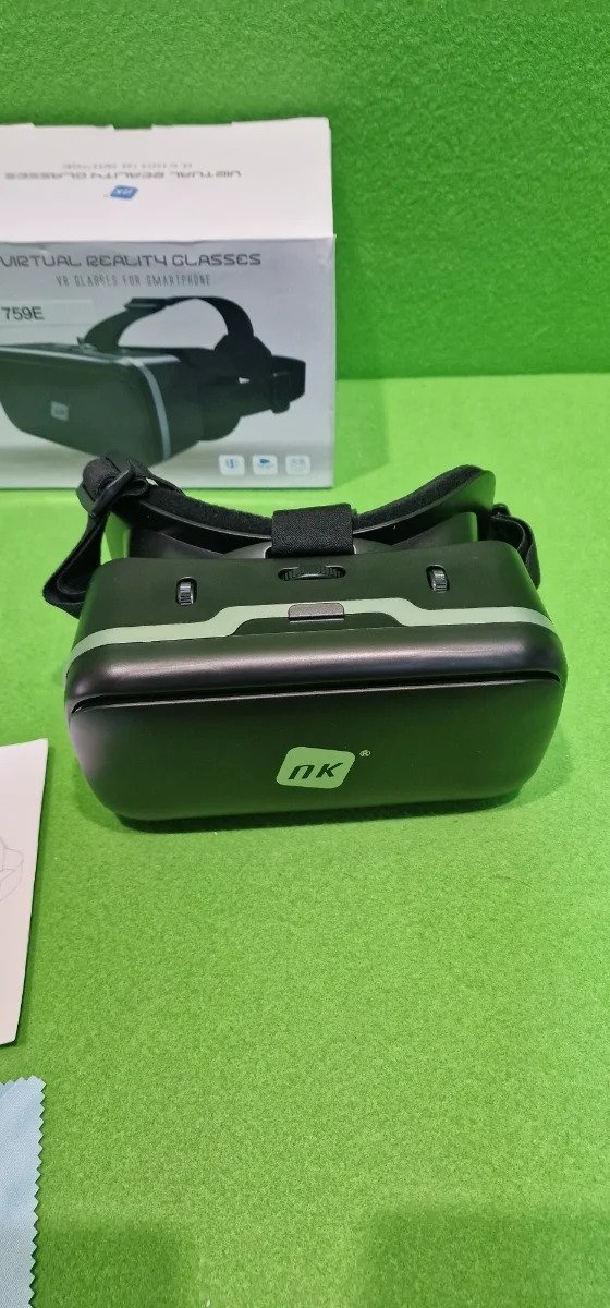 NK Gafas VR para Smartphone con Auriculares – Gafas Inteligentes 3D Realidad Virtual con Audio para Smartphone entre 4.7″ – 6.53″, Ángulo Visión 90-100º, Giro 360º, Objetivo y Pupila Regulable – Negro