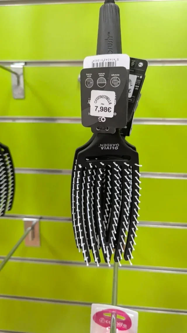 Olivia Garden Fingerbrush – Cerdas de Nylon Ionizadas – Mediano – Color Negro
