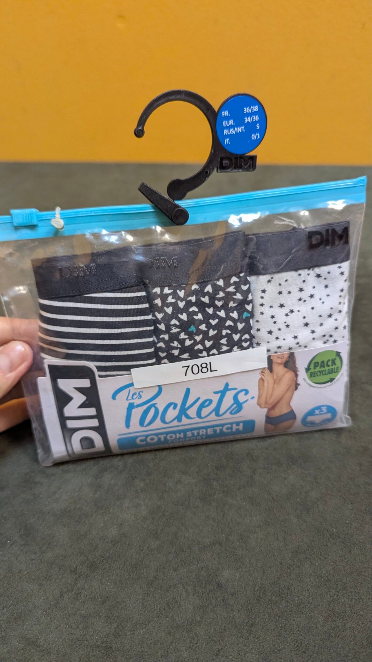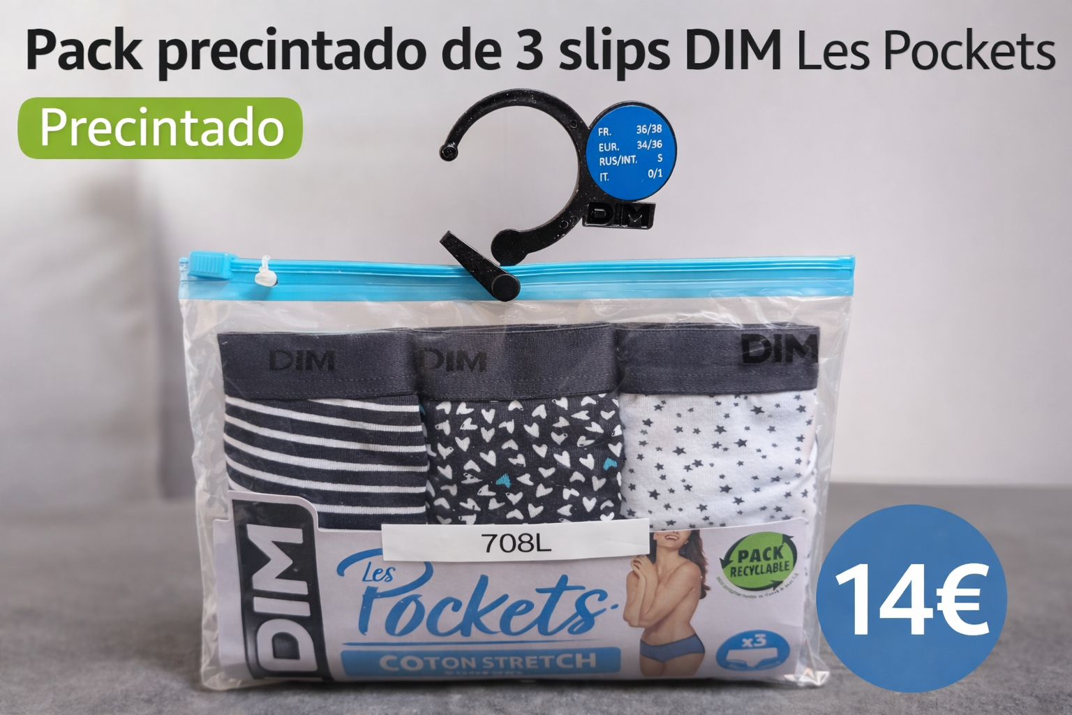 Pack de 3 slips de mujer DIM Les Pockets en algodón stretch.