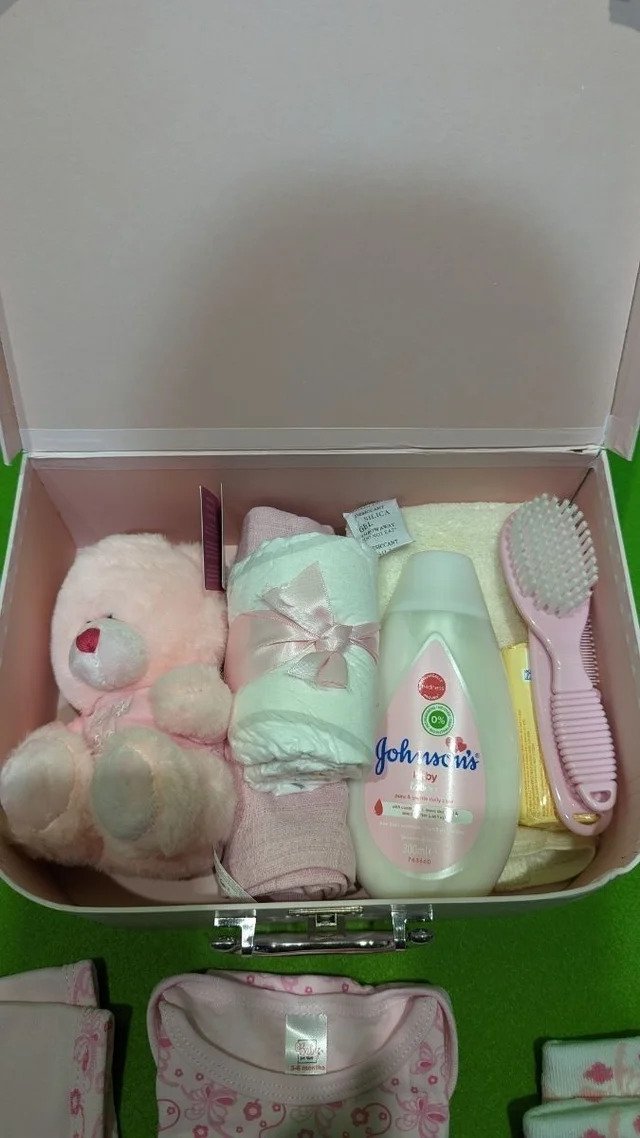 Regalo de Recién Nacido Niña Cestas de Recién Nacido Rosas Estilo Maletín con Osito, Cepillo, Esponja, Ropa y Otras Cosas de Bebé Esenciales – Cesta de Bebé para Baby Shower