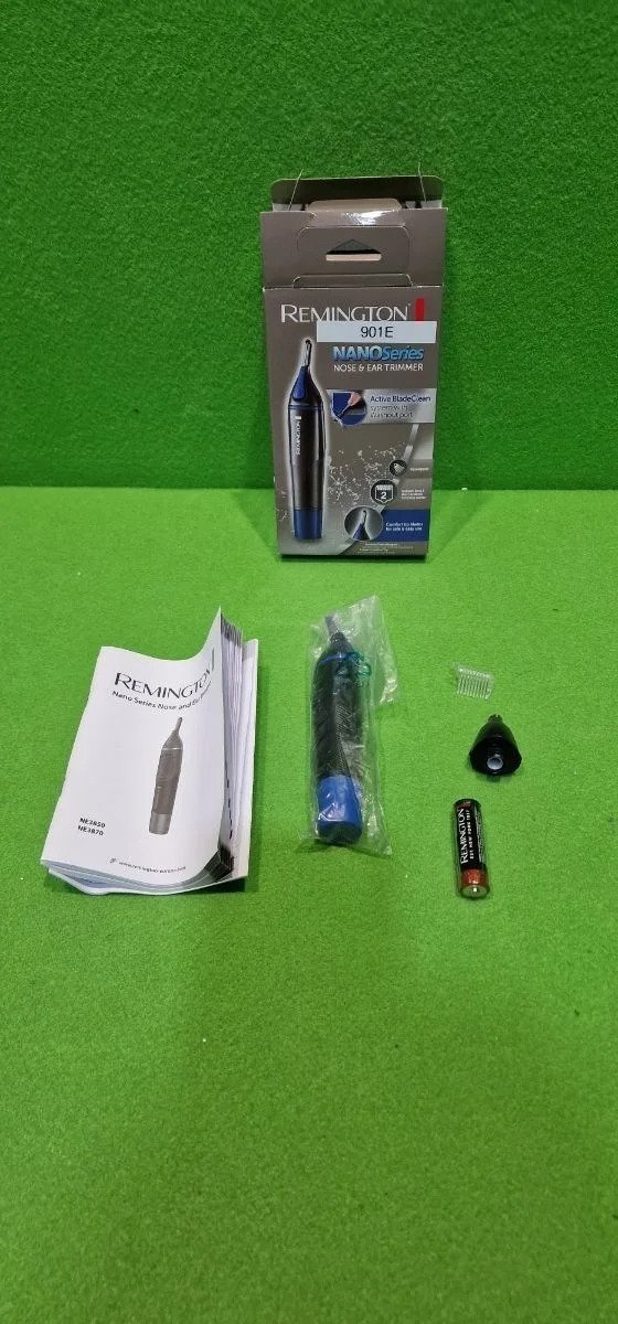 Remington Recortador nasal de la serie Nano (cabezal giratorio y cabezal recortador vertical de doble cara, peine para cejas, limpieza fácil y rápida) NE3850 Para un recorte higiénico del vello, el cuerpo exterior antimicrobiano plateado cuenta con iones que combaten las bacterias que suelen acumularse en otros recortadores*, gracias a lo cual las personas con piel sensible se ahorran infecciones