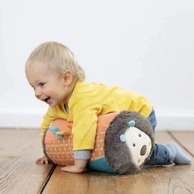 Fehn 066326 Rodillo de estimulación temprana con león, ayuda para el gateo con un divertido diseño de león para bebés y niños pequeños a partir de 6 meses, Dimensiones: diámetro 22 x 34 cm El rodillo de estimulación temprana para gateo con un fascinante diseño de león acompañará al bebé en todo momento