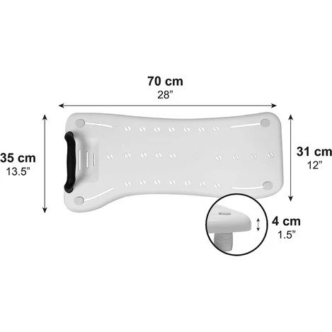 La tabla de baño con asa permite al usuario bañarse cómodamente sentado, evitando así riesgos indeseados como resbalones y caídas. Además, es fácil de limpiar y debido a su peso ligero (2,5 kg) se puede desmontar fácilmente para dejar libre la bañera.