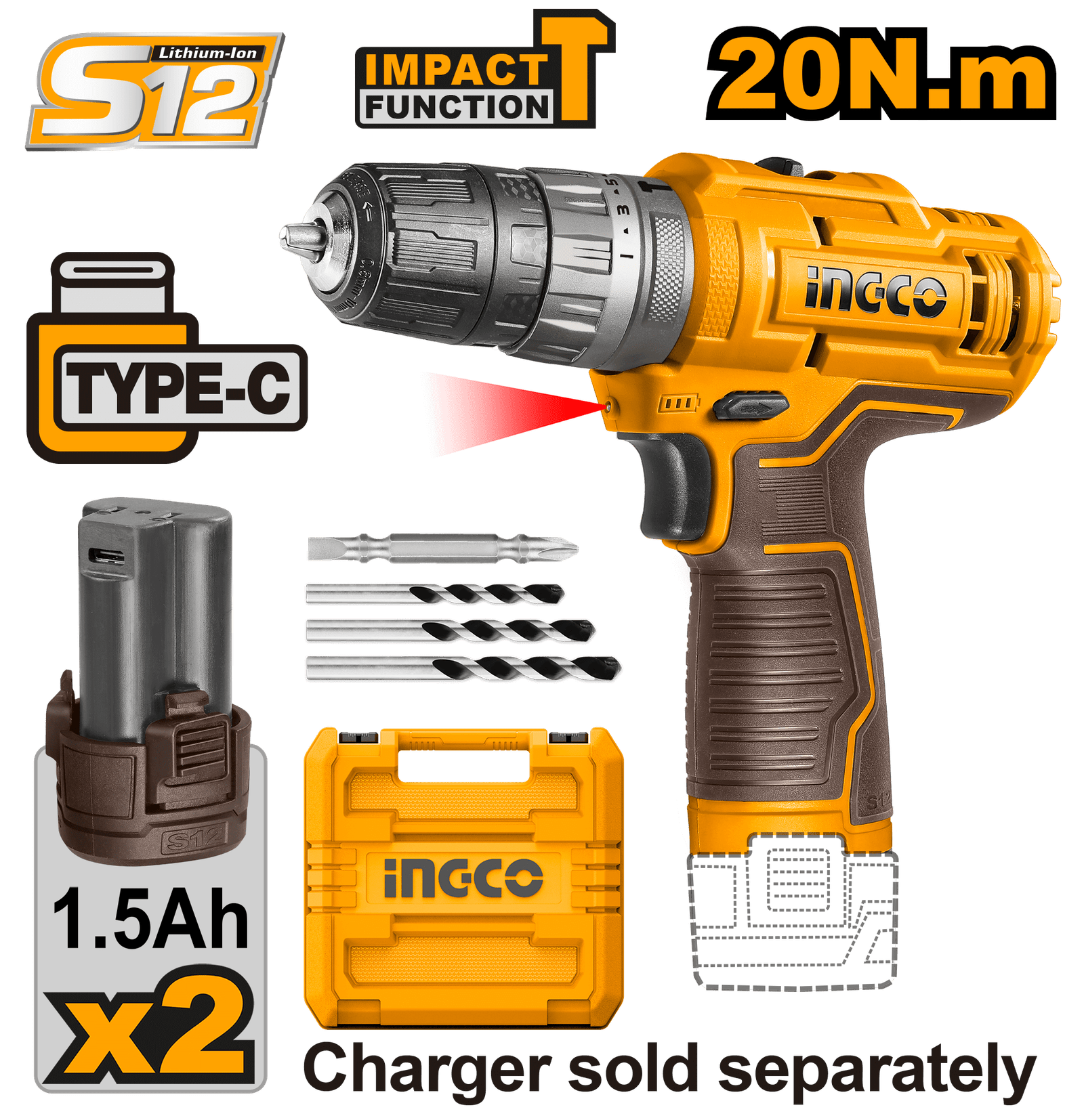TALADRO ATORNILLADOR CON PERCUTOR 12V INGCO CIDLI12202E